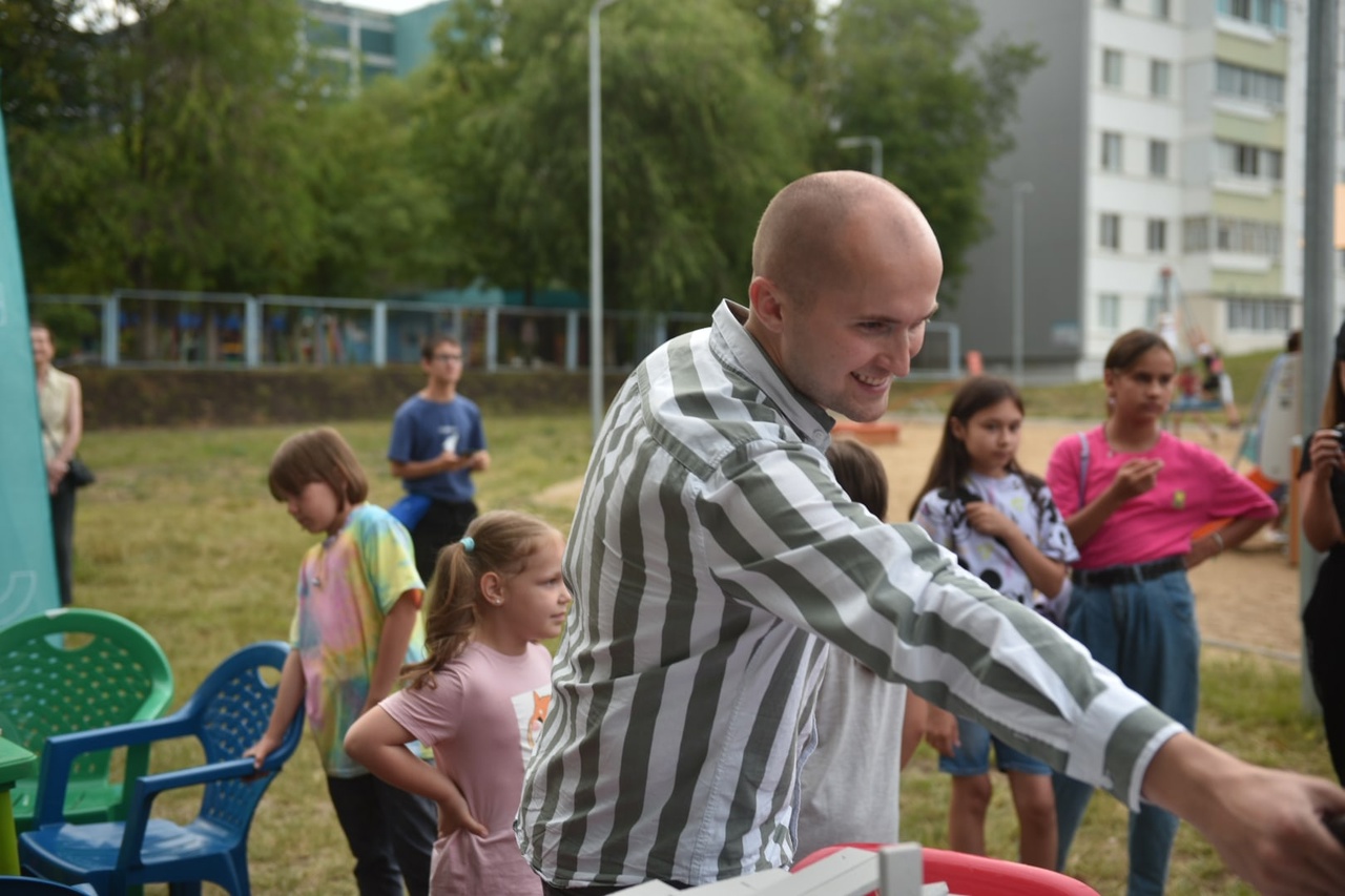 Во дворе дома 56/23 архитекторы программы "Наш двор", Центр молодёжных клубов "Подросток" и Движение Первых провели праздник для юных челнинцев.