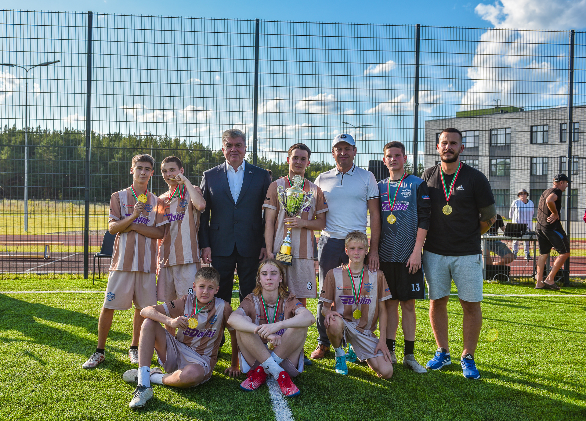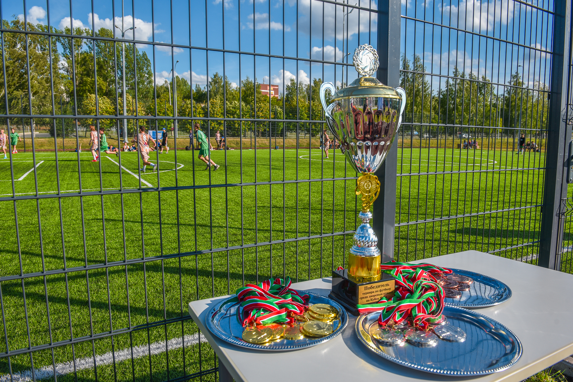 На поле полилингвальной гимназии №59 «Адымнар-Чаллы» состоялся финал турнира по мини-футболу среди дворовых команд на Кубок Мэра. Поздравил юных спортсменов и наградил победителей Наиль Магдеев. На встрече также присутствовали главы трех районов: Ленар Ахметзянов, Эдуард Фаттахов и Винер Харисов.