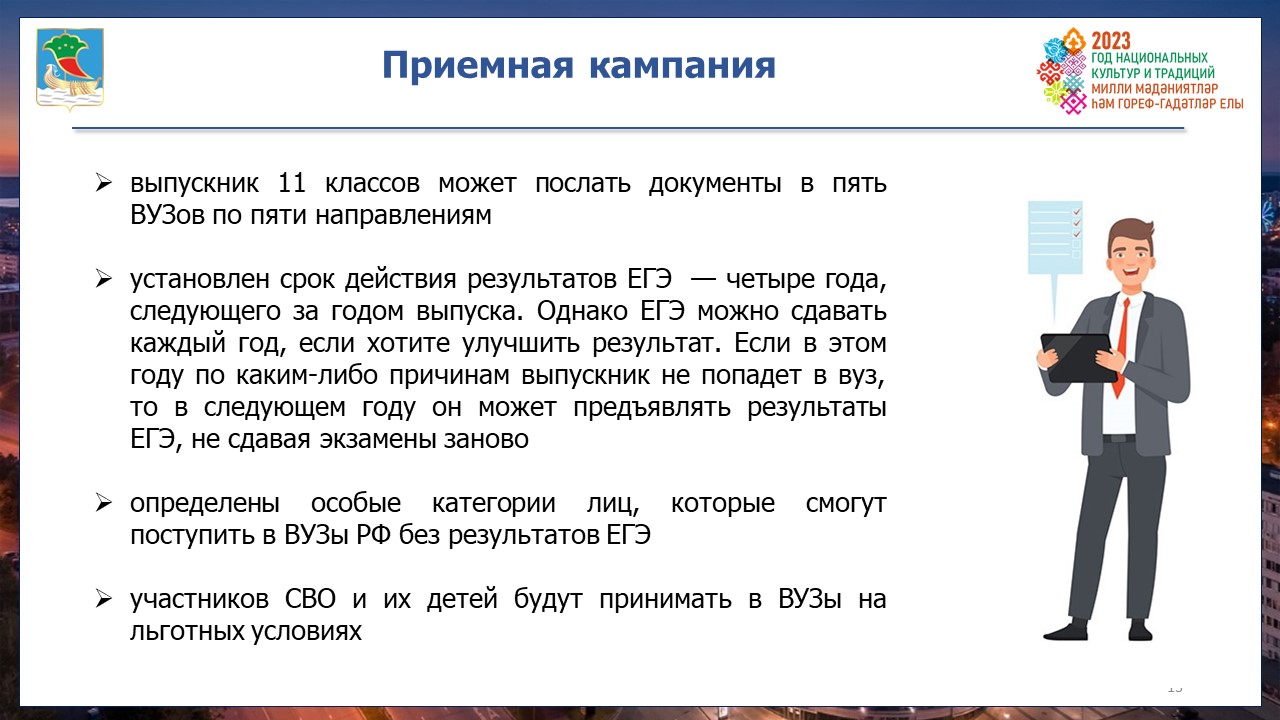 Сейчас вчерашние одиннадцатиклассники готовятся к поступлению в вузы. 71% выпускников планируют продолжить обучение в высших учебных заведениях нашей Республики.