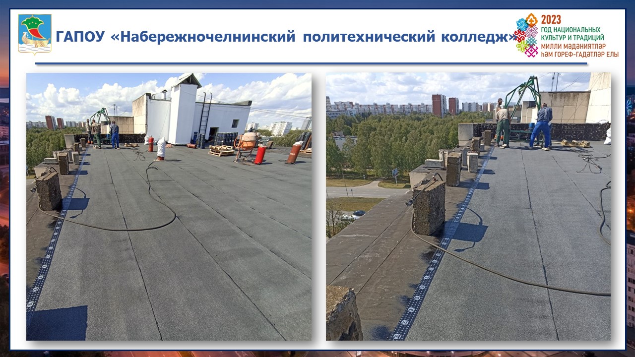 По республиканской программе капитального ремонта учебных корпусов и общежитий выполняется ремонт кровли общежития Набережночелнинского политехнического колледжа. Общая готовность – 58%.