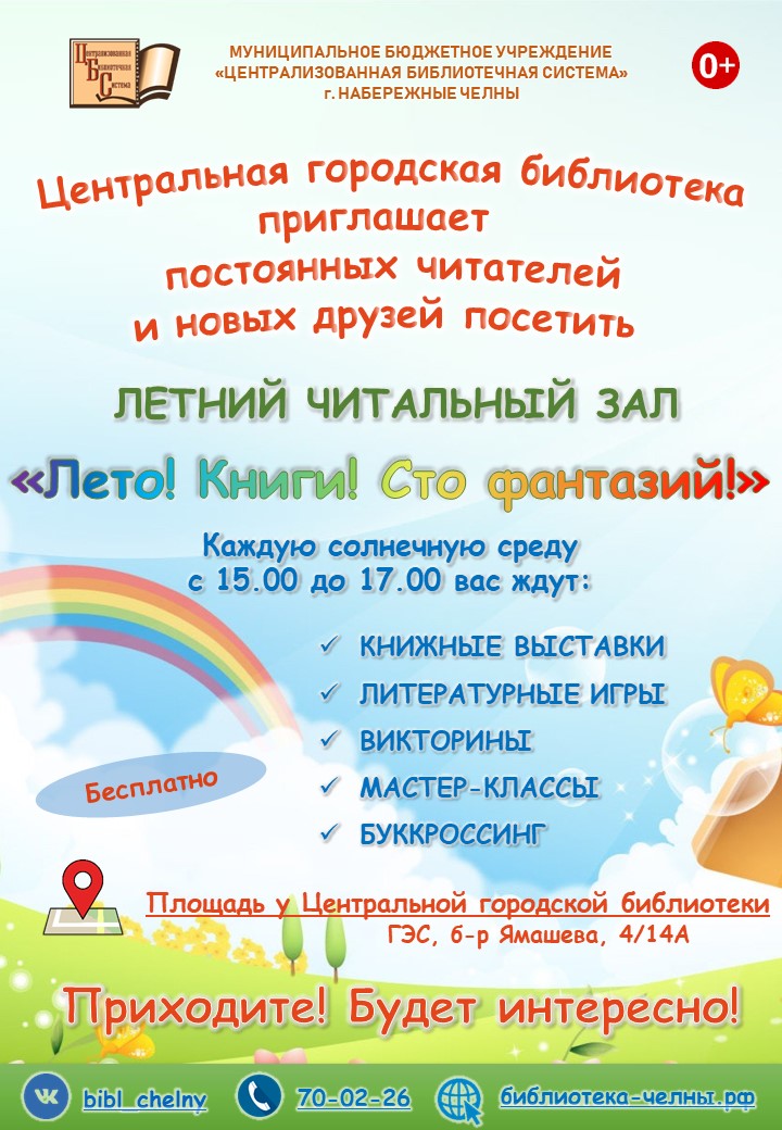 9 августа летний читальный зал Центральной городской библиотеки приглашает всех влюбленных в книги отпраздновать День города.