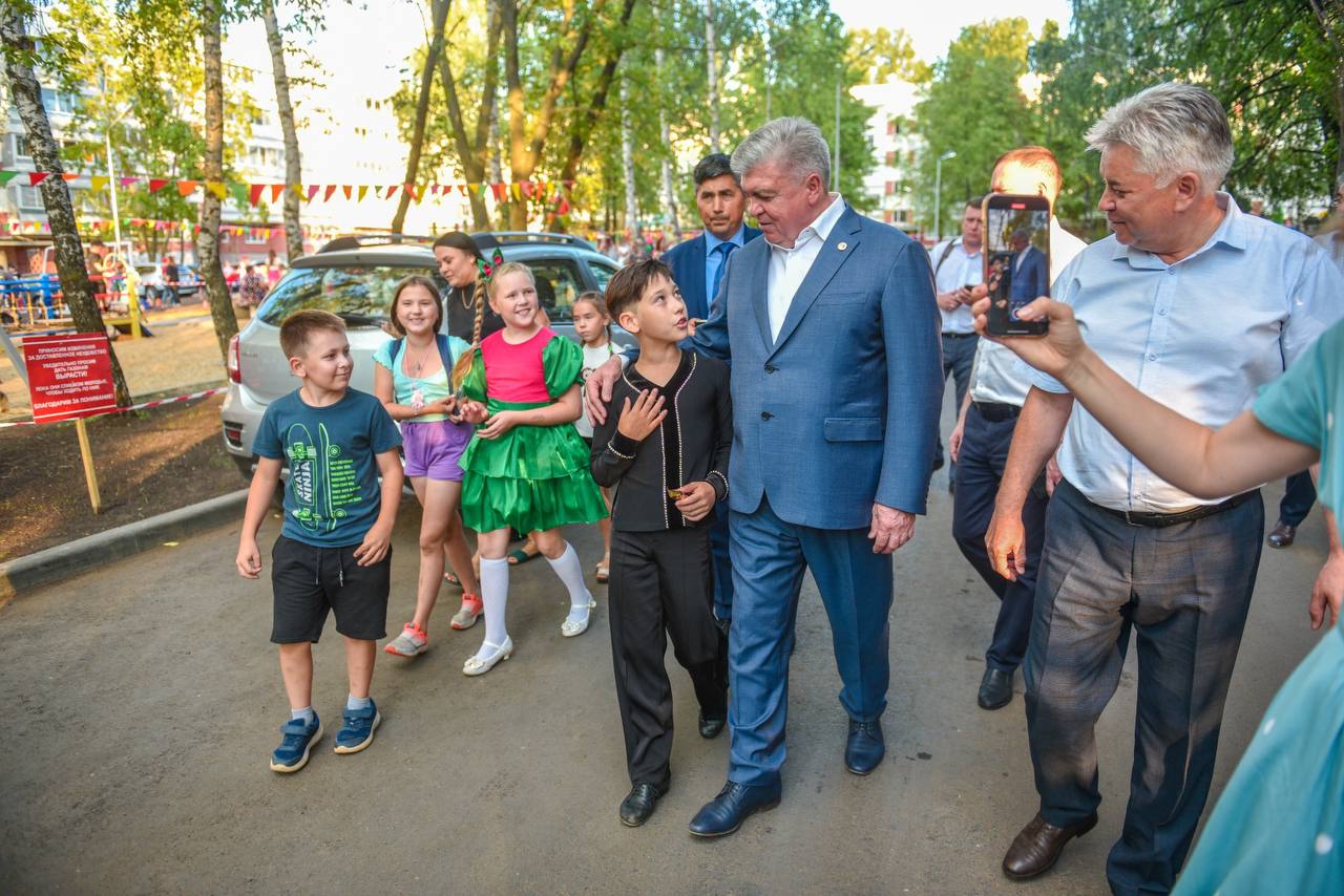 "Мы видим широкие проезды, благоустроенный двор и хочется радоваться тому, какая работа выполняется. От того, как будет выглядеть ваш двор – зависит и от вас самих. Здесь много зелени, и многие деревья посажены не только городскими службами, но и вами, жителями двора, активистами. Пусть эта традиция продолжается на весной и осенью на субботниках. Наша с вами задача - устранять недостатки, да, они бывают, как бывают в любой семье, в любой работе. Наш город - одна большая семья, в которой есть радости, горести, достижения, но мы работаем, делаем всё, чтобы город был лучше", – отметил Наиль Магдеев.