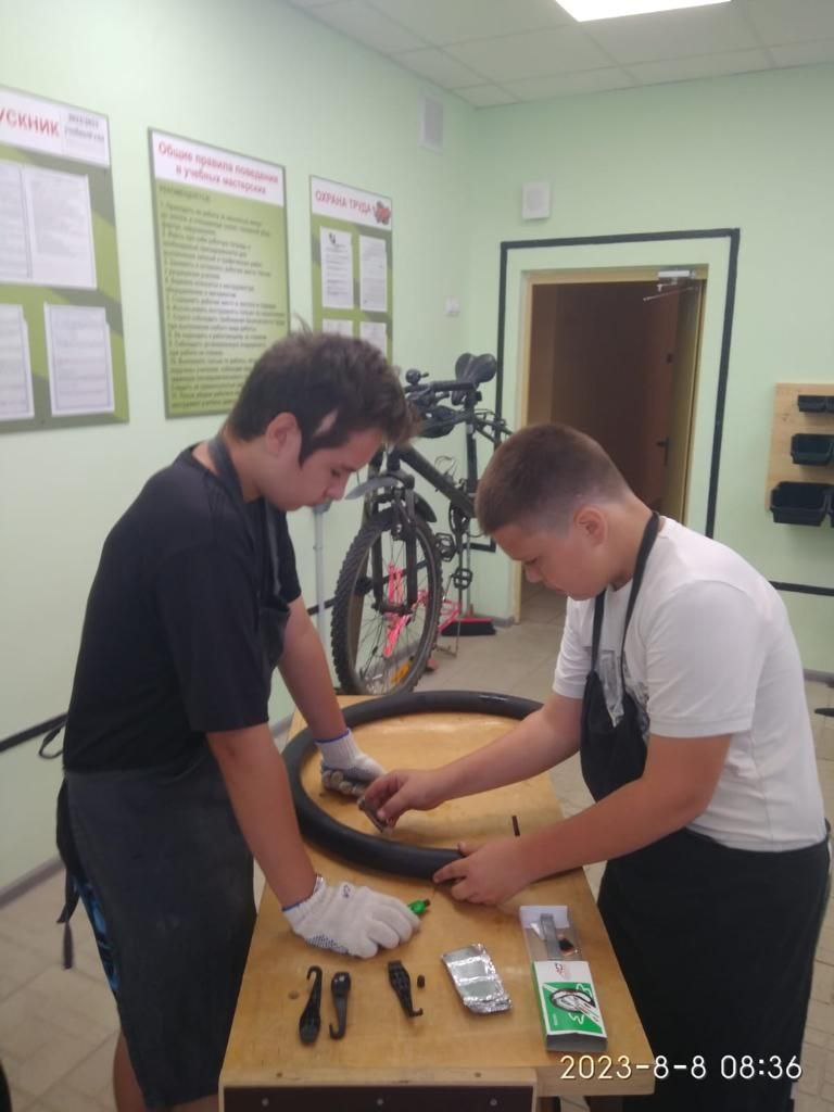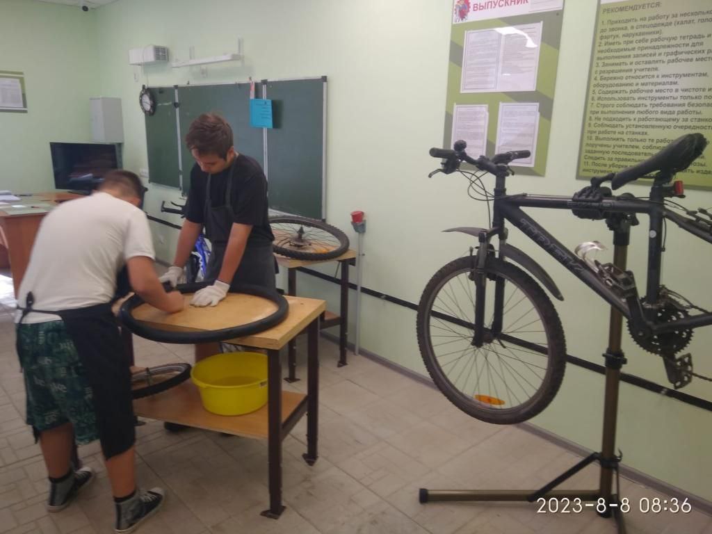 Первый заказ на мелкосрочный ремонт велосипеда от жителей 25 комплекса получили ученики коррекционной школы №68. Они мастерски устранили прокол шин колеса.