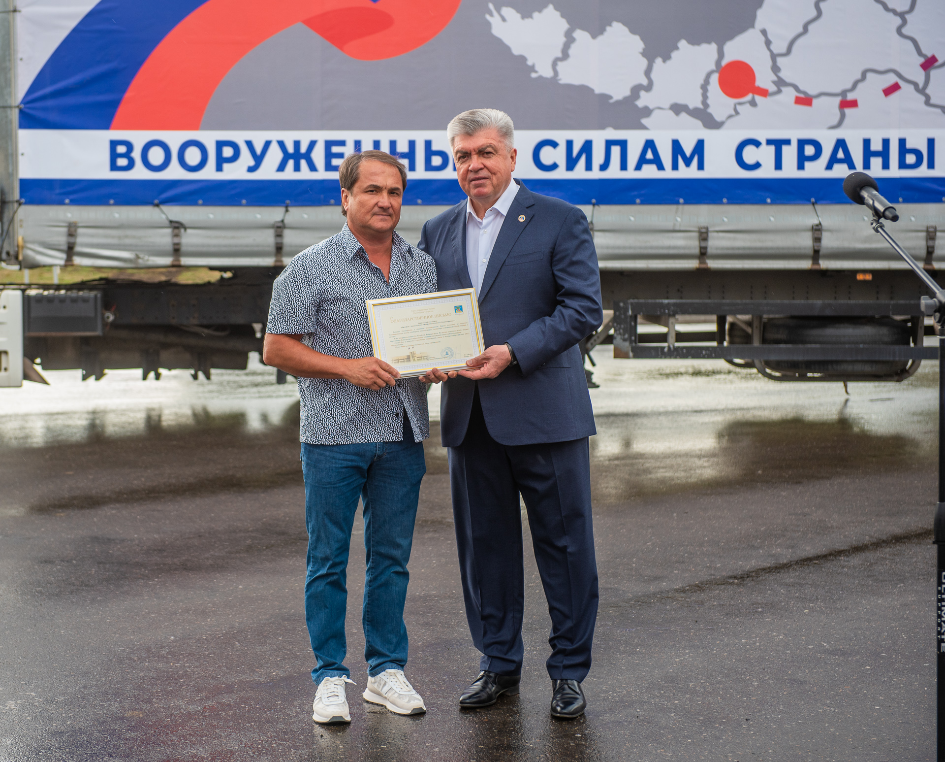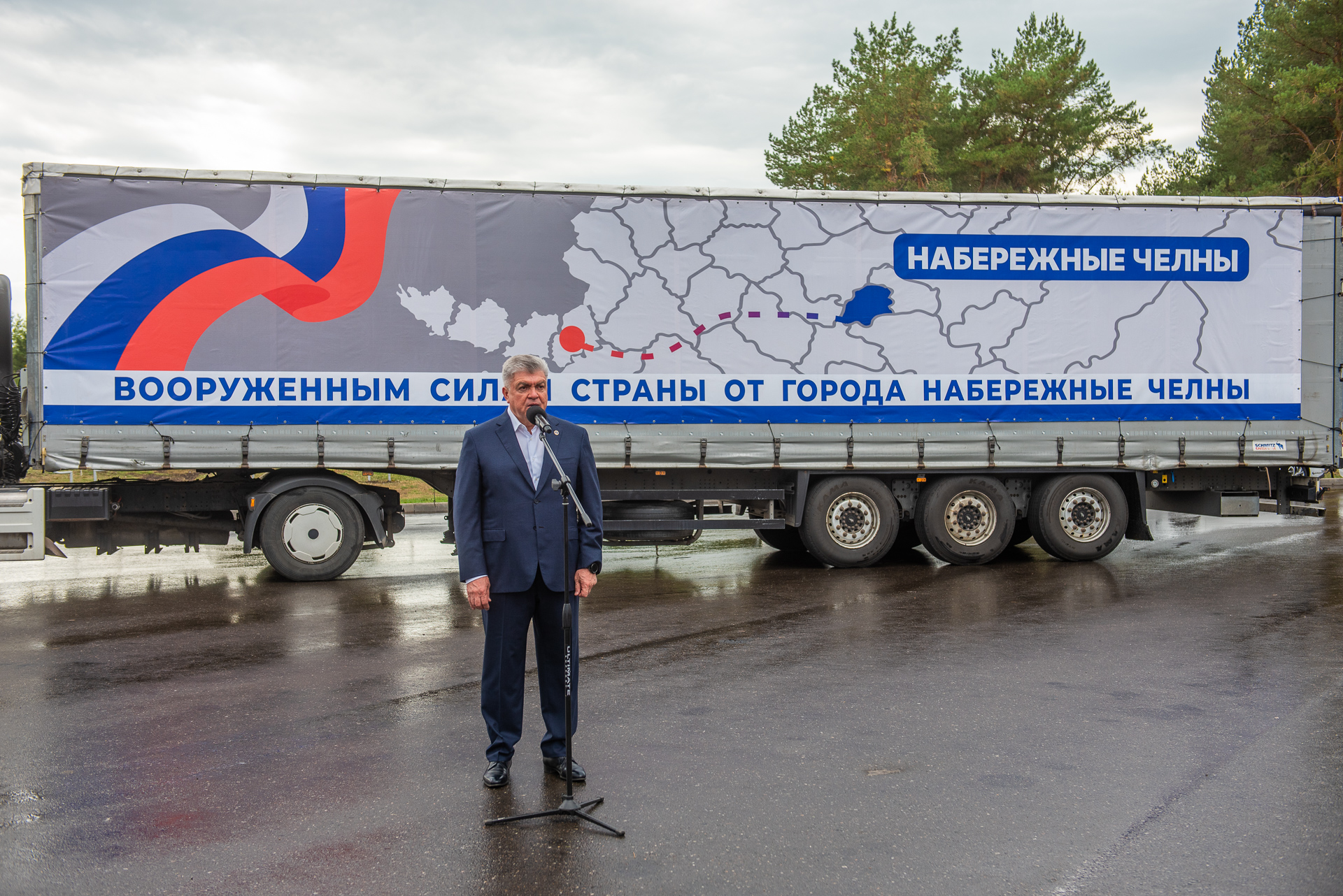 «Группа волонтеров во главе с Рустамом Гатиным выполняет важную миссию в подшефном нашей республике городе Лисичанске. И мы, как составная часть много национальной республики, выполняем эту важную миссию. Груз формируется здесь: крупа, сахар, все, чтобы накормить людей. Все расходы город берет на себя. Также нужно поблагодарить всех, кто занимается этой важной работой: руководитель Исполнительного комитета вместе с управлением торговли, начальниками отраслевых управлений, предпринимателей. Слова благодарности - транспортным компаниям, кто отправляет грузы. Никто из транспортников безучастным не остается. Водителю, который отправляется с важным гуманитарным грузом, желаем счастливого и доброго пути», - отметил мэр города.