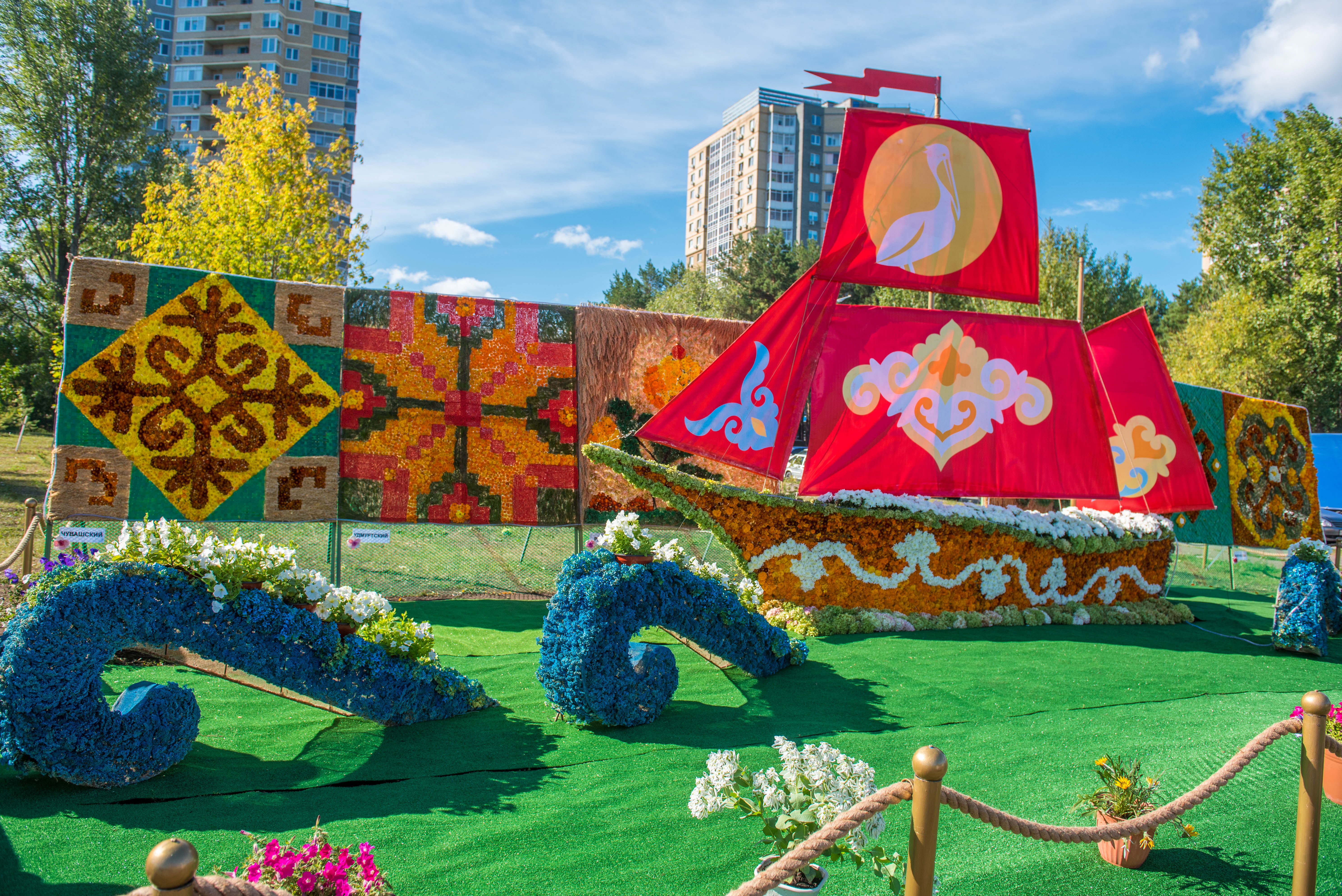 На этот раз фестиваль и цветочные композиции посвящены Году педагога и наставника в России и Году национальных традиций и культуры в Республике Татарстан.