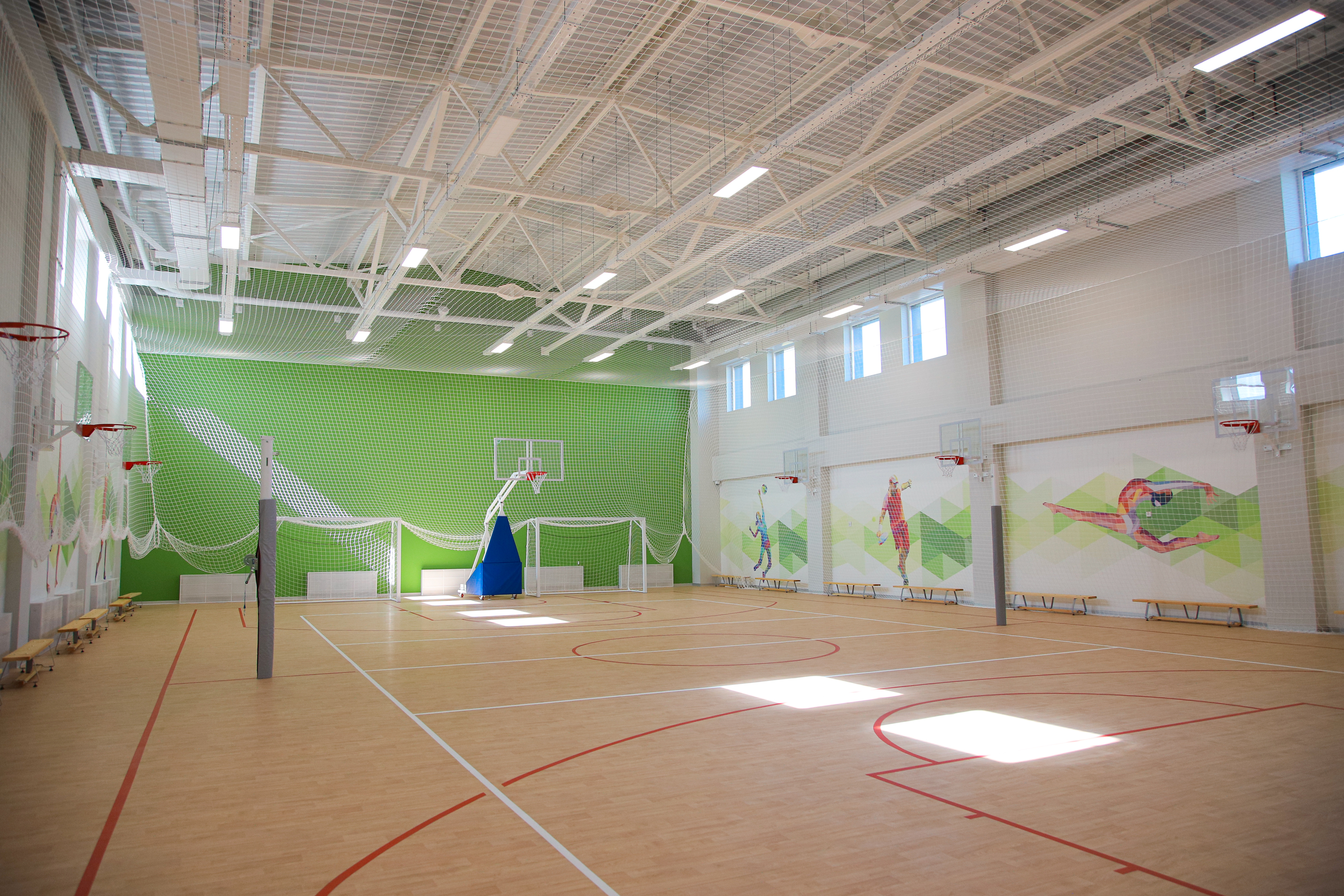 Кроме уличных спортивных полей есть спортивные залы. В школе будут организованы секции по тхэквондо, футболу и другим видам спорта.