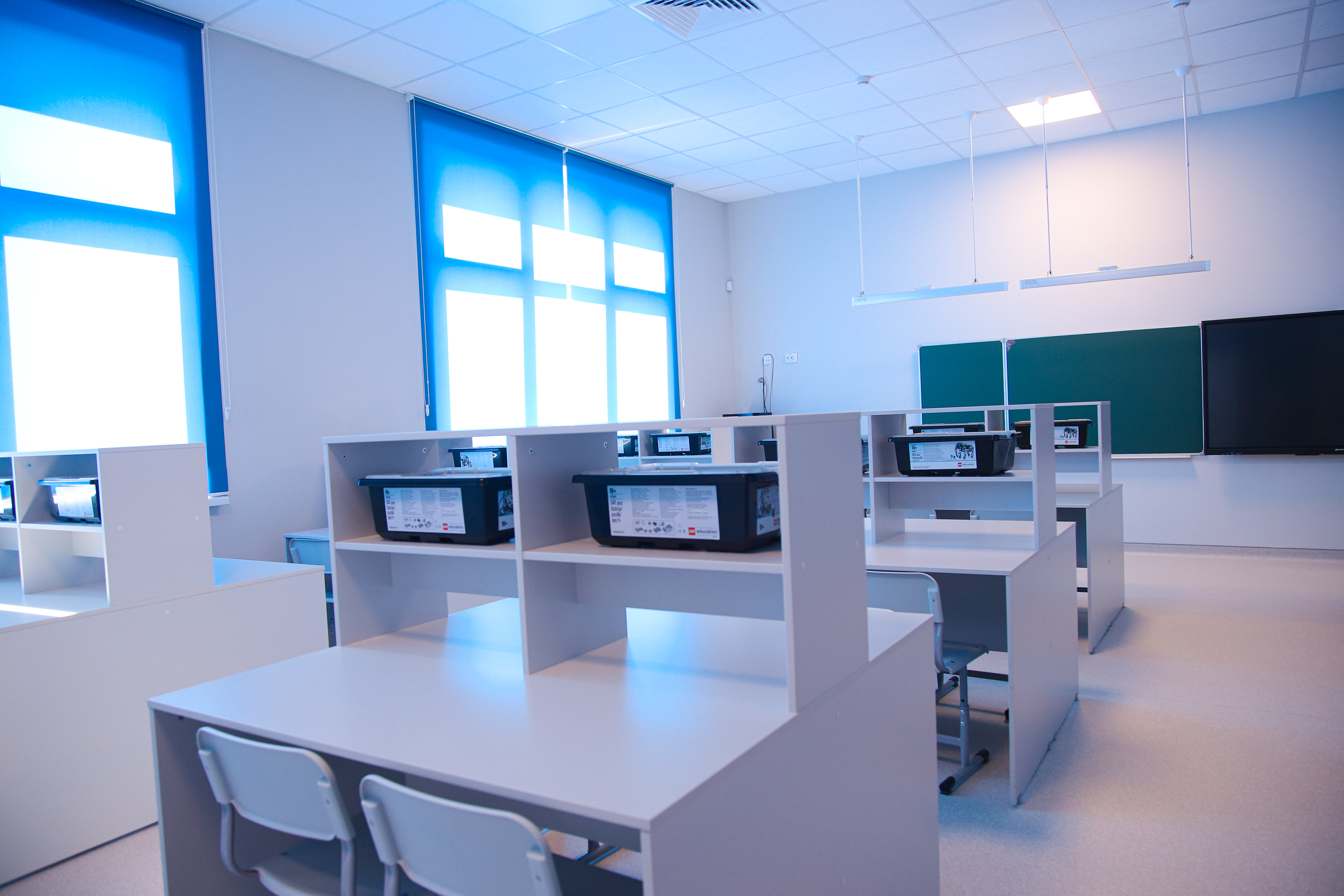 Кабинеты и лаборатории оборудованы всем необходимым для занятий, есть отдельный класс робототехники с настоящими роботами. Оборудование приобрела компания "Талан".
