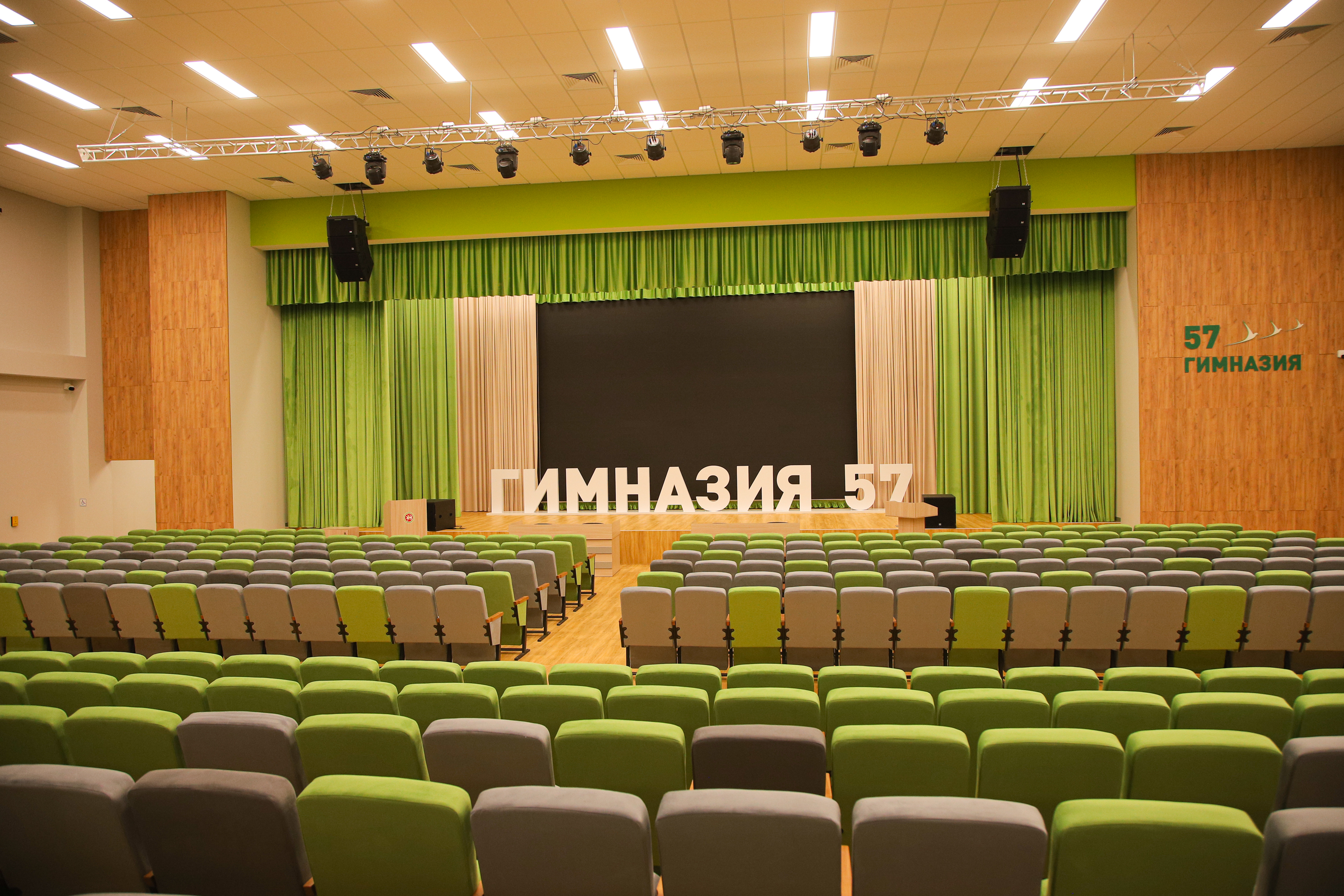 Для школьных мероприятий обустроен большой актовый зал на 750 мест.