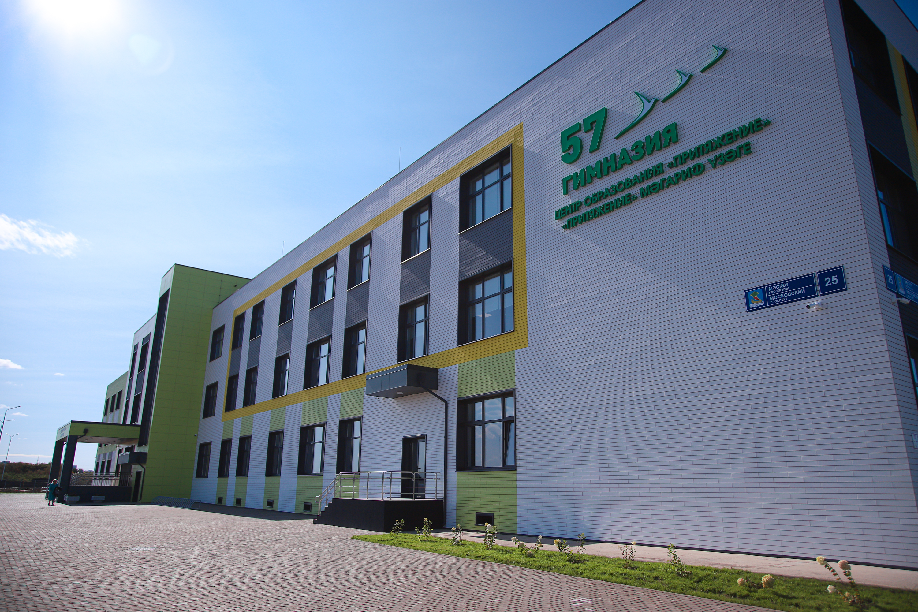 Гимназия расположена в микрорайоне "Притяжение". Площадь территории школы – около 3 га, возле здания есть спортивные поля. Вход в школу возможен только через КПП с устройством Face ID, которое считывает лица учеников, то есть дополнительно документов не нужно.