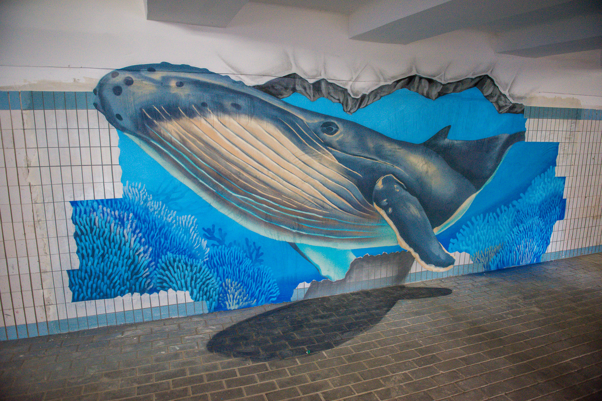 На остановке «Океан» был выполнен косметический ремонт, подземный переход находится в хорошем состоянии и не требует масштабных работ. Самым интересным нововведением здесь стали трехмерные граффити. Их выполнил художник Марат Билялов. Здесь уже плавает черепаха, сегодня к ней присоединился кит. Уже на следующей неделе к ним присоединится еще один подводный обитатель – марлин.