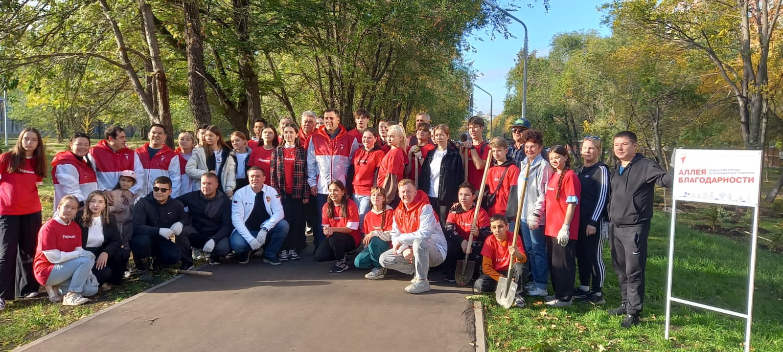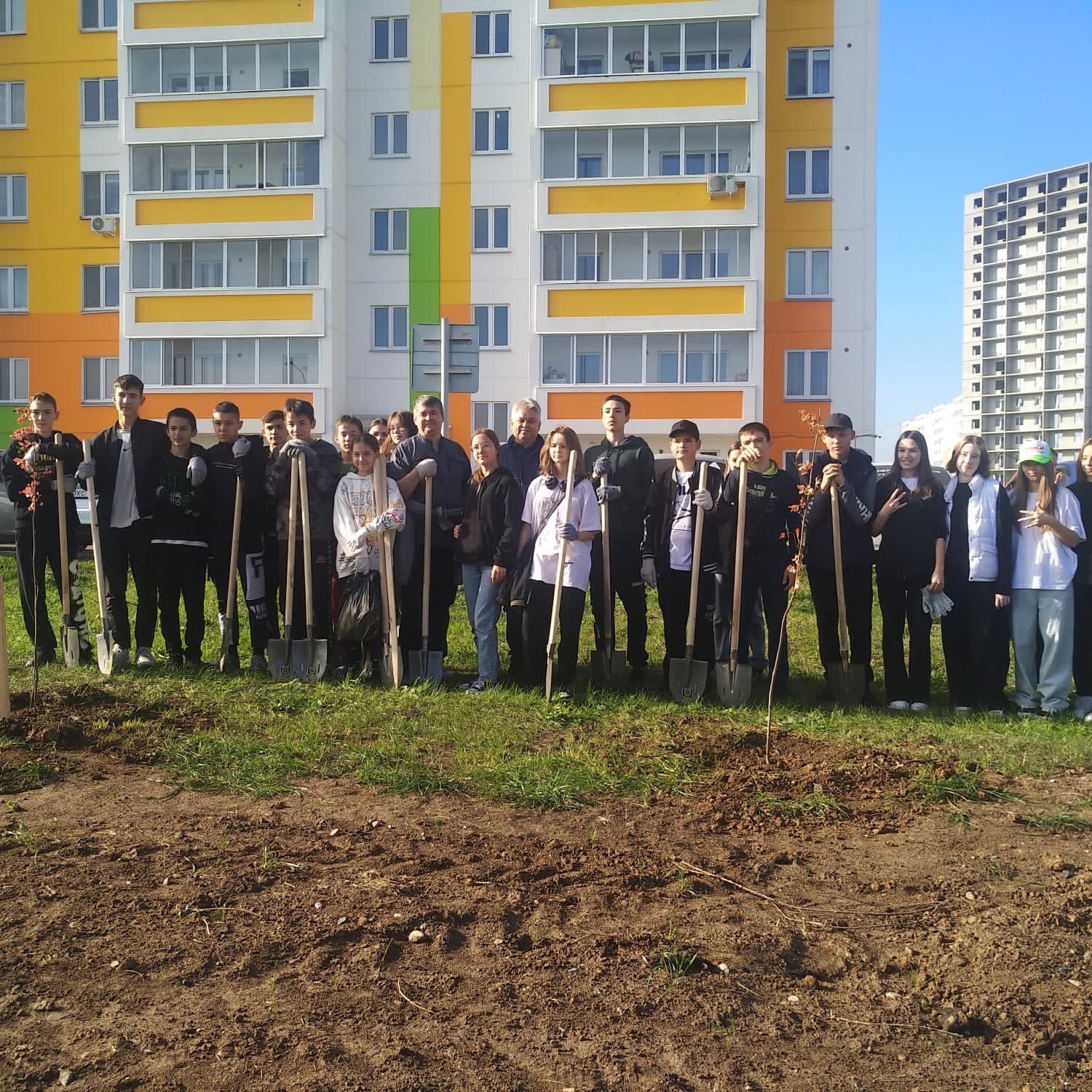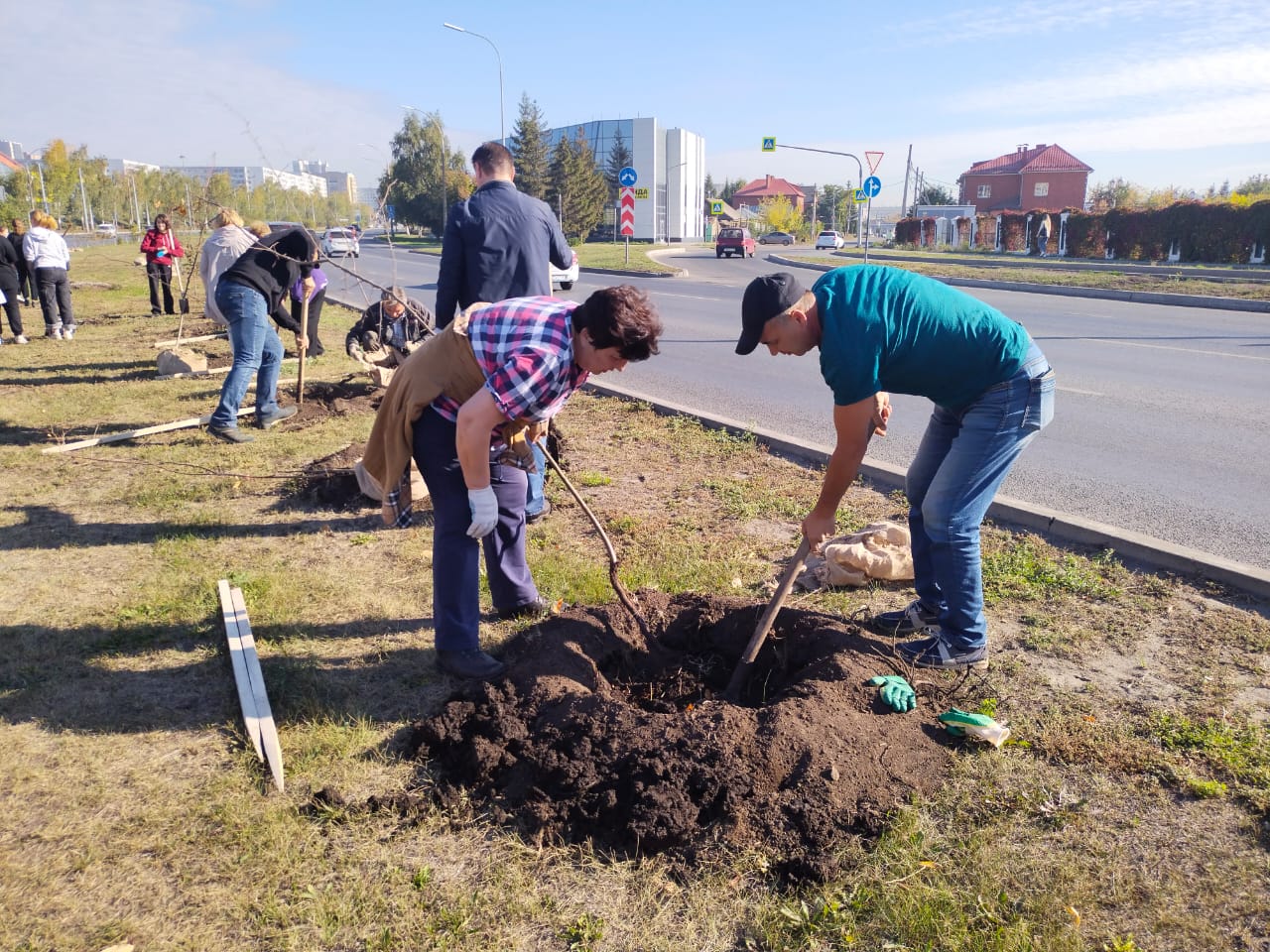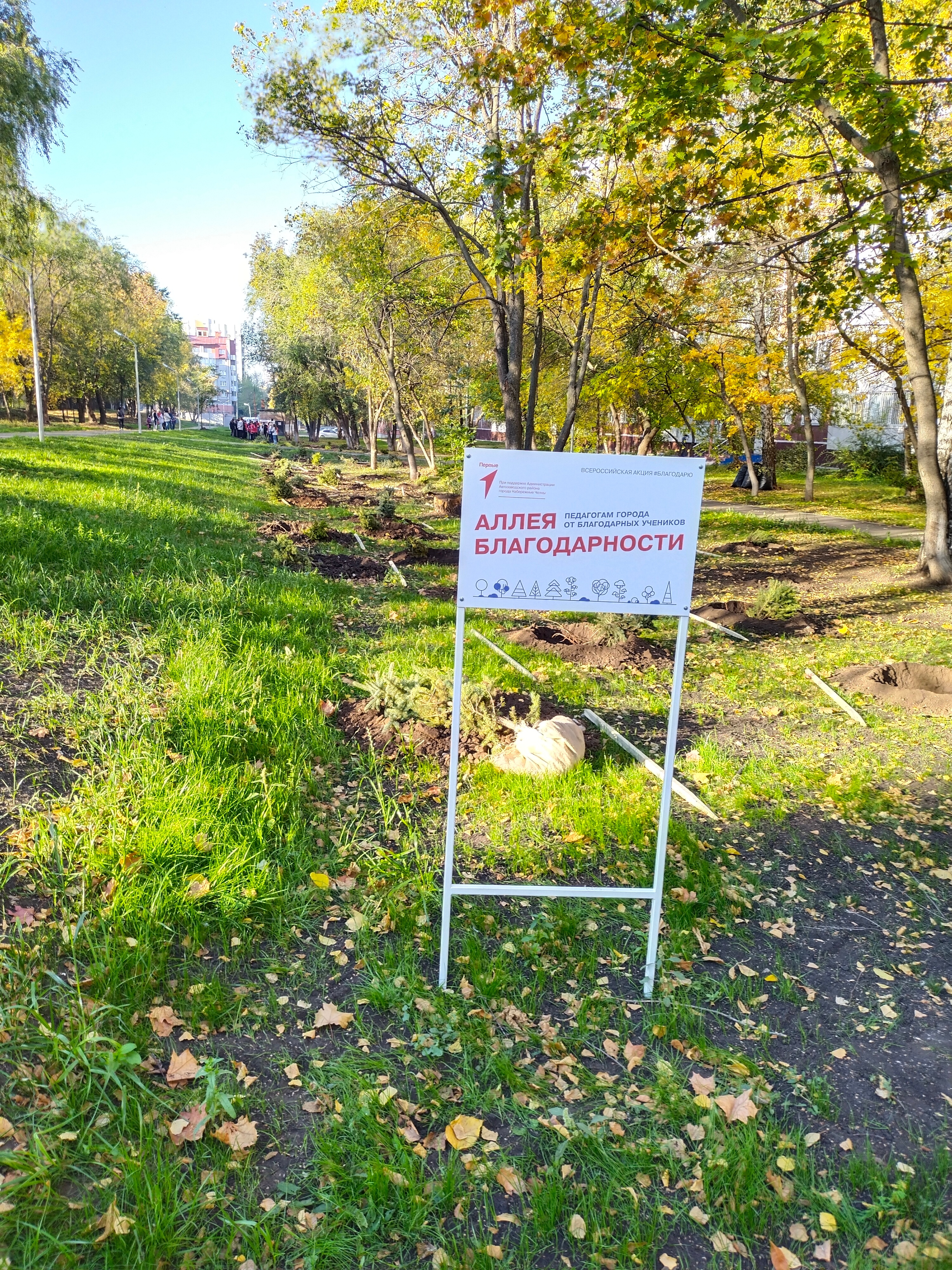 На разделительной полосе по пр. Набережночелнинский, между остановками «Челныгорстрой» и «Орловка»  администрация Комсомольского района совместно с сотрудниками и студентами Набережночелнинского государственного педагогического университета посадили 200 яблонь.