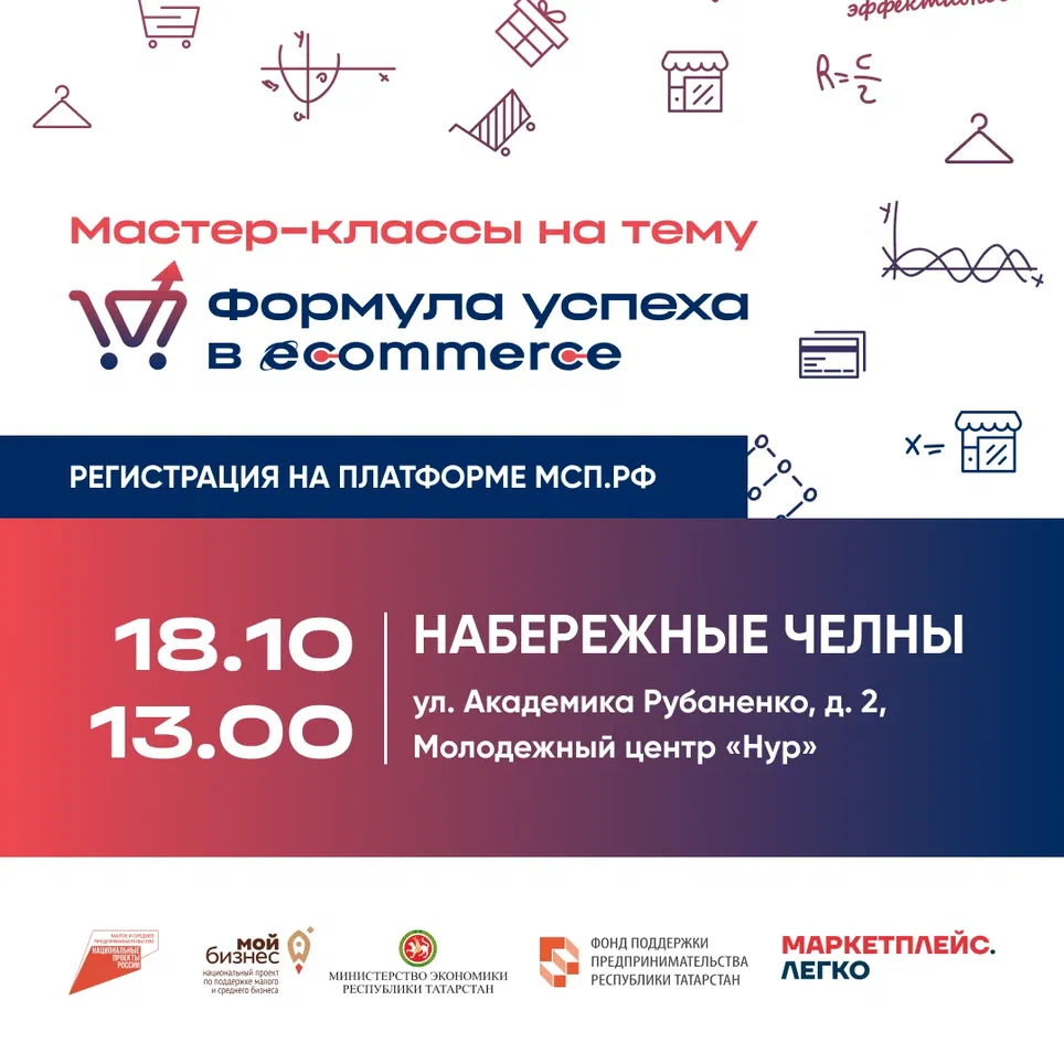 18 октября Центр «Мой бизнес» проведет очный мастер-класс по интернет-торговле при поддержке Министерства экономики Республики Татарстан. Начало мероприятия 13:00, молодежный центр «Нур».