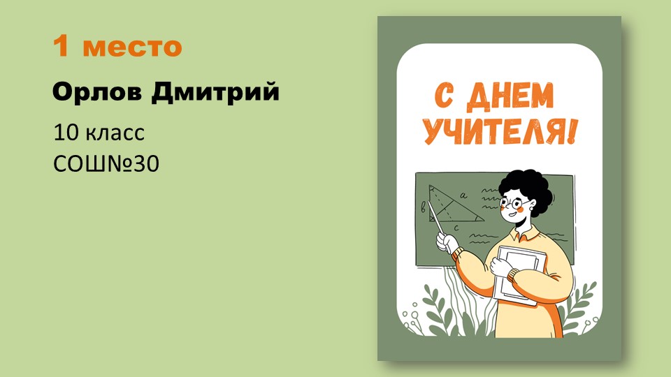 1 место - Орлов Дмитрий, СОШ №30, 10 класс