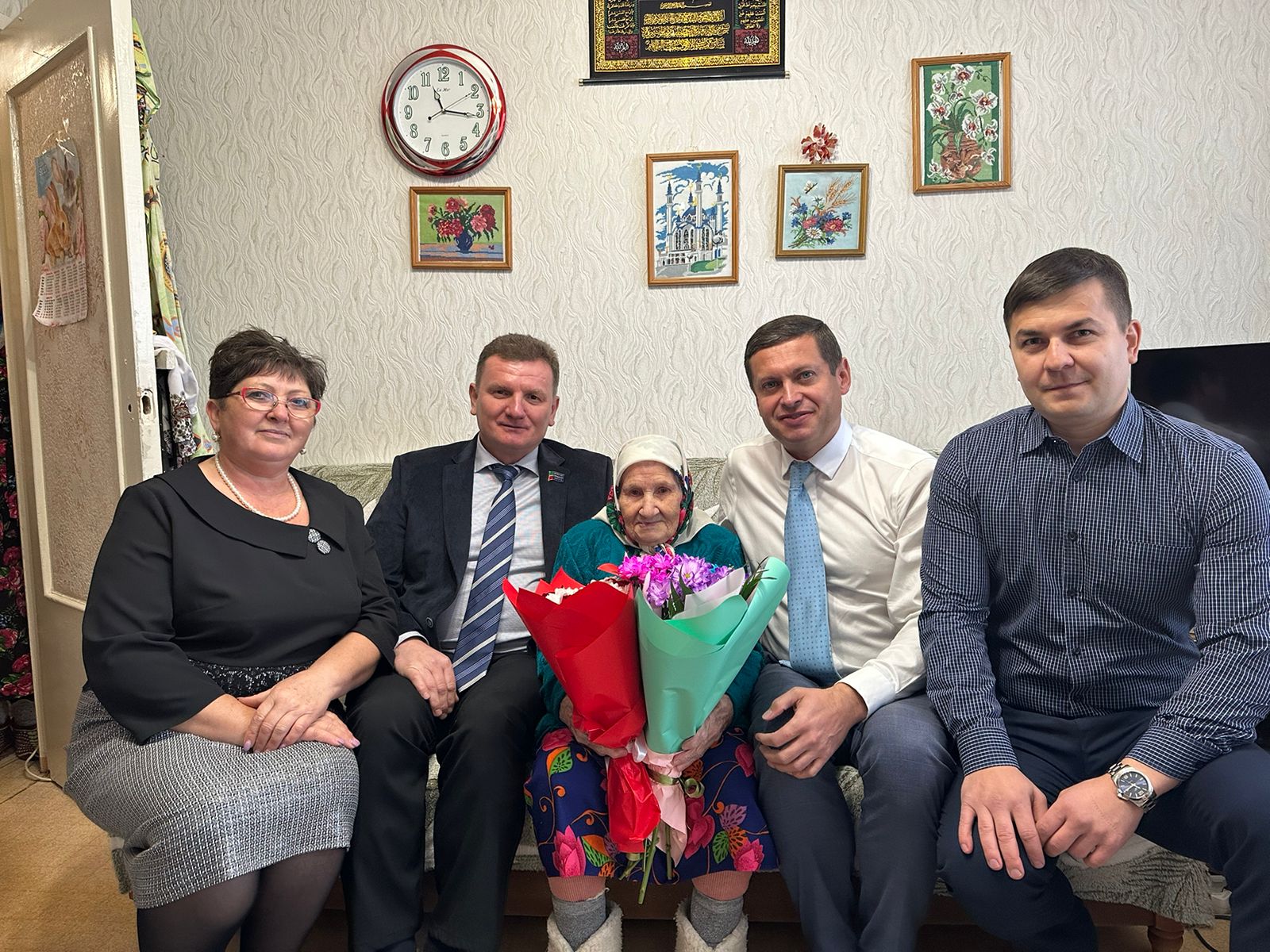 От имени президента Российской Федерации Владимира Путина, мэра города Наиля Магдеева поздравления с 95-летним юбилеем получила ветеран Великой Отечественной войны, труженик тыла Ркия Гилязевна Валиева.