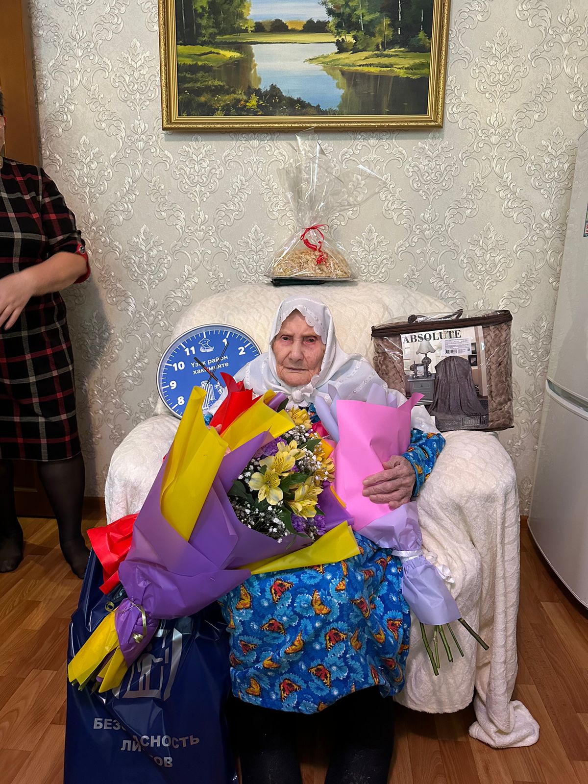 От имени президента Российской Федерации Владимира Путина, раиса Республики Татарстан Рустама Минниханова, мэра города Наиля Магдеева поздравления со 100-летним юбилеем получила ветеран Великой Отечественной войны, труженик тыла Нурзиган Хузиахметовна Хузиахметова.