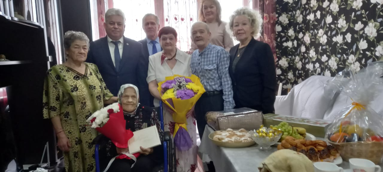 От имени президента Российской Федерации Владимира Путина, от имени раиса Республики Татарстан Рустама Минниханова и мэра города Наиля Магдеева юбиляра поздравил Глава администрации Автозаводского района Винер Харисов и председатель ТОС «Импульс» Ольга Малышева.