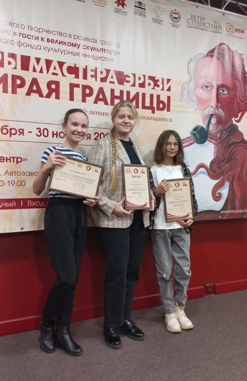 В рамках реализации национального проекта «Культура» обучающиеся Детской художественной школы №1 Малика Фасхиева, Герасимова Милана, Хусаинова Самира стали обладателями дипломов II степени в международном детском конкурсе «Миры мастера Эрьзи. Стираем границы», который входит в большую культурную программу, посвященную 150-летию Степана Эрьзи.