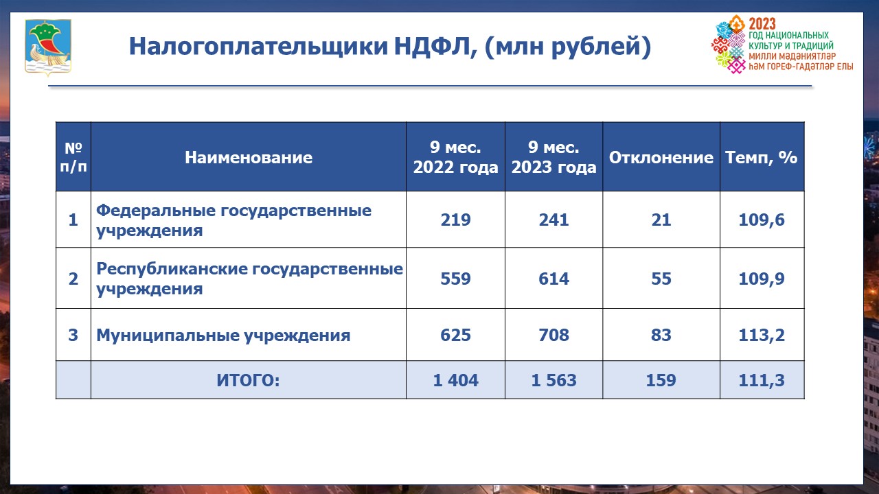 Наряду с предприятиями города рост поступлений в консолидированный бюджет достигнут государственными и муниципальными учреждениями на 159 млн рублей.