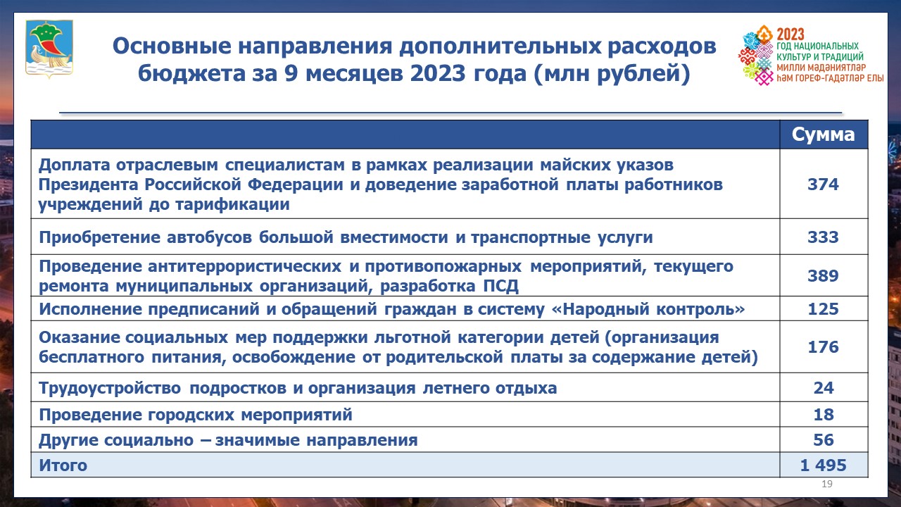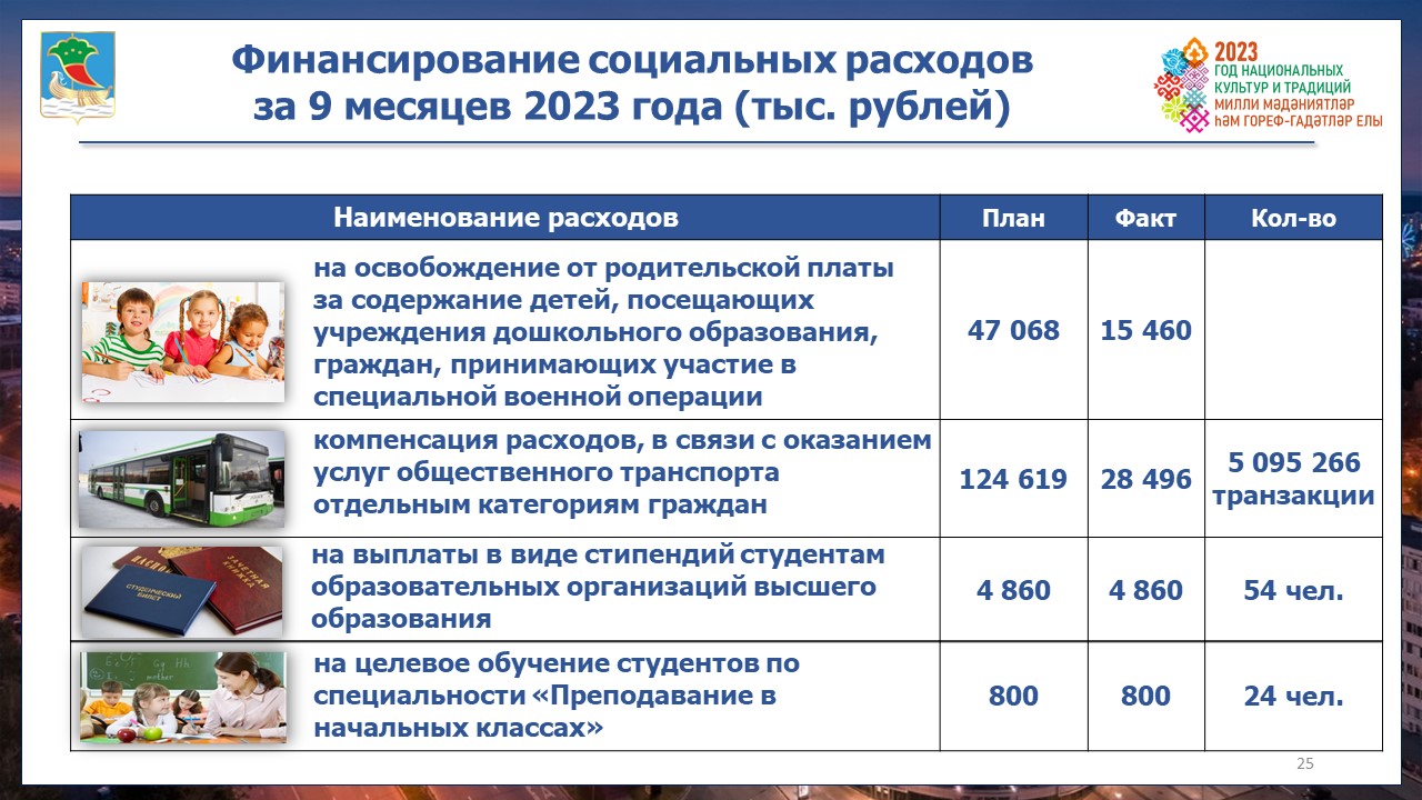 «Бюджет у нас социально-ориентированный. Все дополнительные доходы мы направили на благие цели: бесплатное питание детей военнослужащих, находящихся на СВО, бесплатное посещение детей воинов детских садов, приобретение автобусов большой вместимости», – обозначил мэр города Наиль Магдеев.