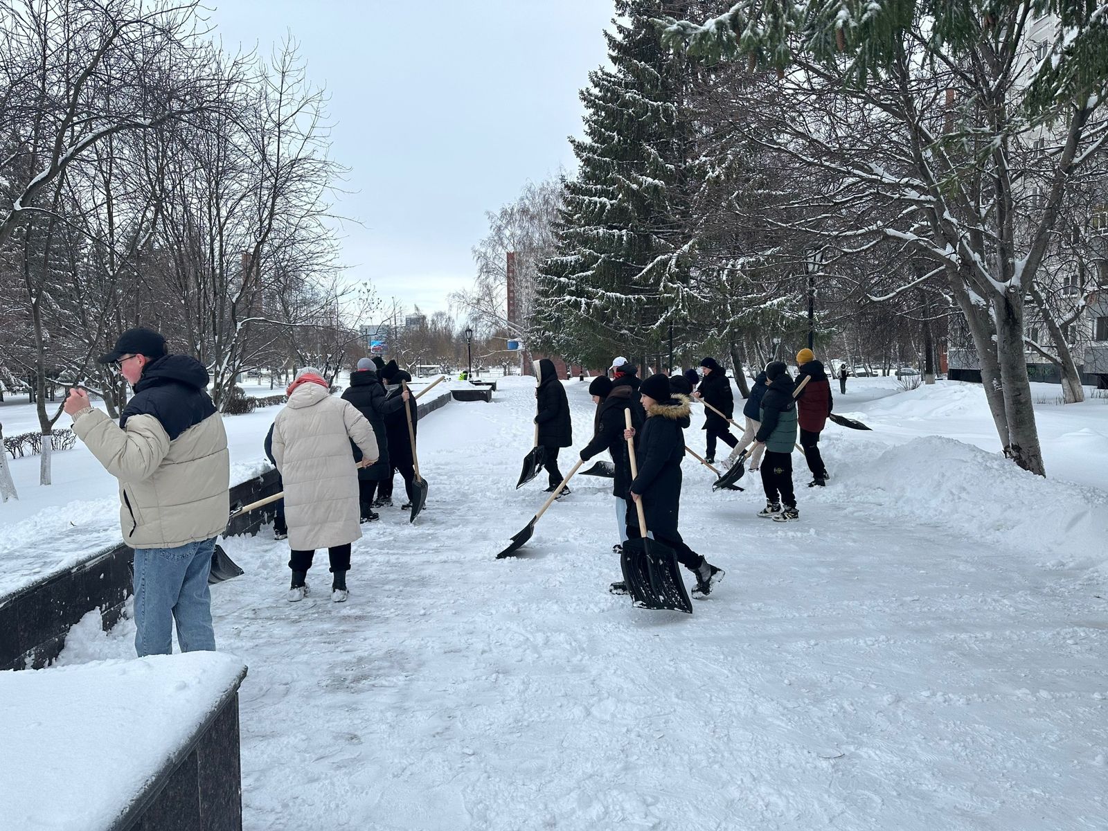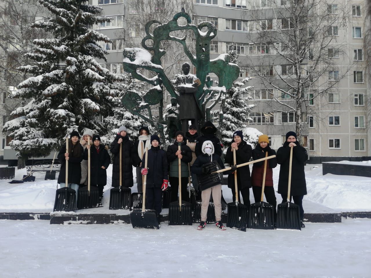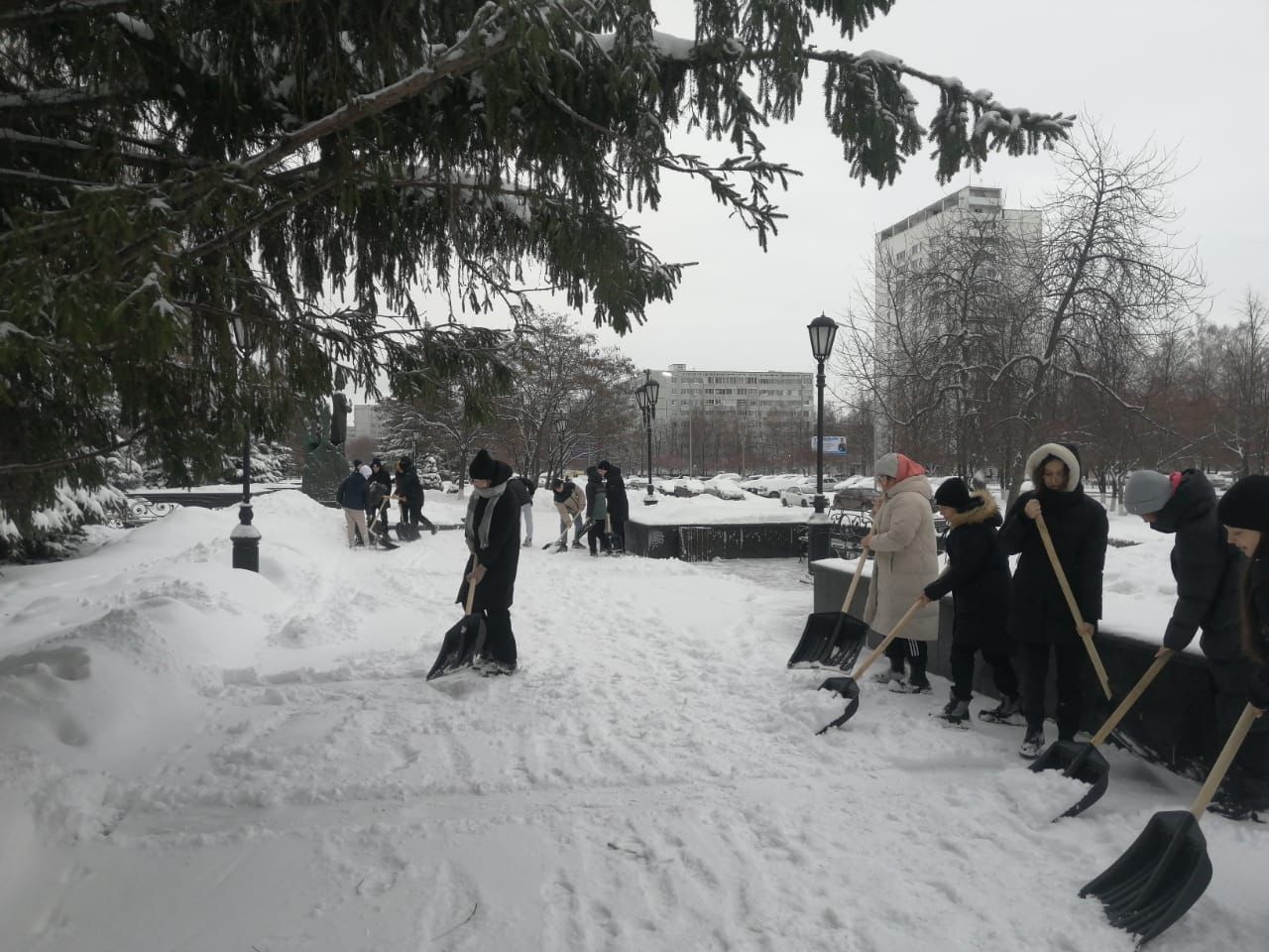 На территории Центрального района снежный десант продолжается. Сегодня учащиеся школы №№ 17,22,25,53 вышли на уборку на площадь Азатлык, бульвар Энтузиастов, бульвар Касимова и сквер имени Габдуллы Тукая.