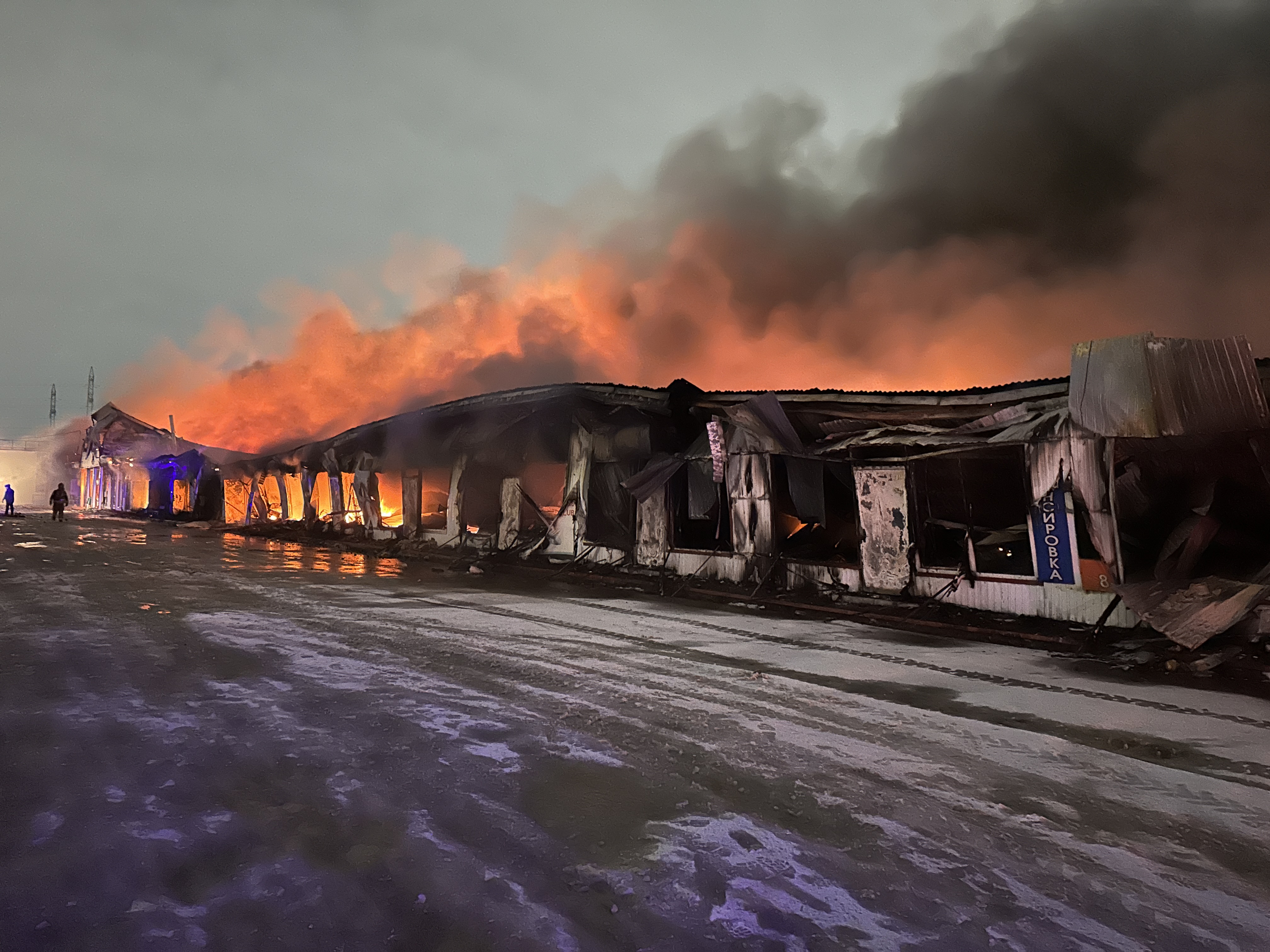 В 18:37 поступило сообщение о горении кровли авторынка "Гараж-500" промзоны "Заритал". Силы и средства Набережночелнинского пожарно-спасательного гарнизона реагировали по 2 номеру вызова. По уточнённой информации по прибытии первых пожарных подразделений происходило частичное горение двух торговых павильонов размерами в плане 35*190 и 35*130 м. Информация о пострадавших не поступала.