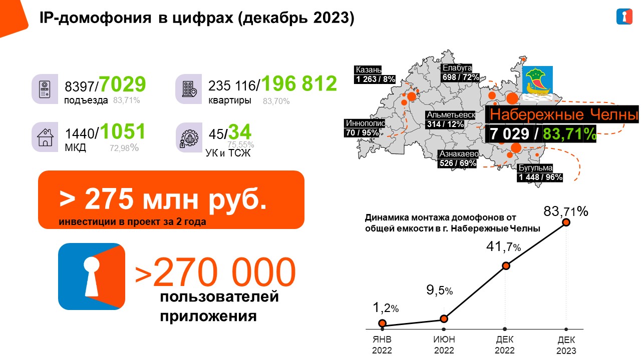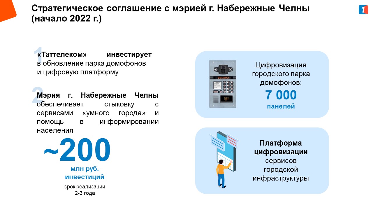 В рамках Соглашения между городом Набережные Челны и «Таттелеком» проводится установка 7 000 IP домофонов взамен старых аналоговых.