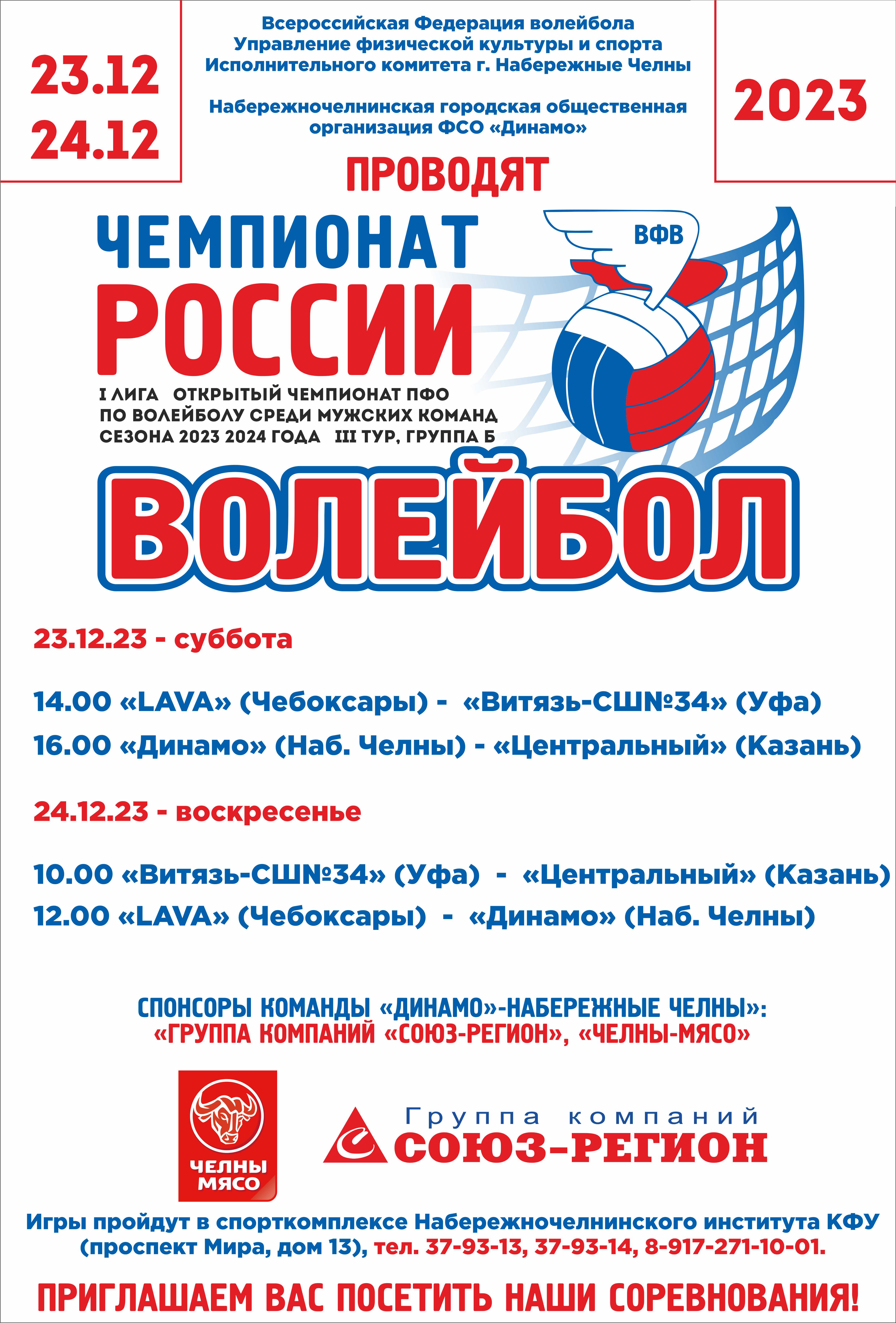 В Набережных Челнах пройдет третий тур Чемпионата России первой лиги - ПФО по волейболу среди мужских команд сезона 2023-2024, подгруппа «Б».