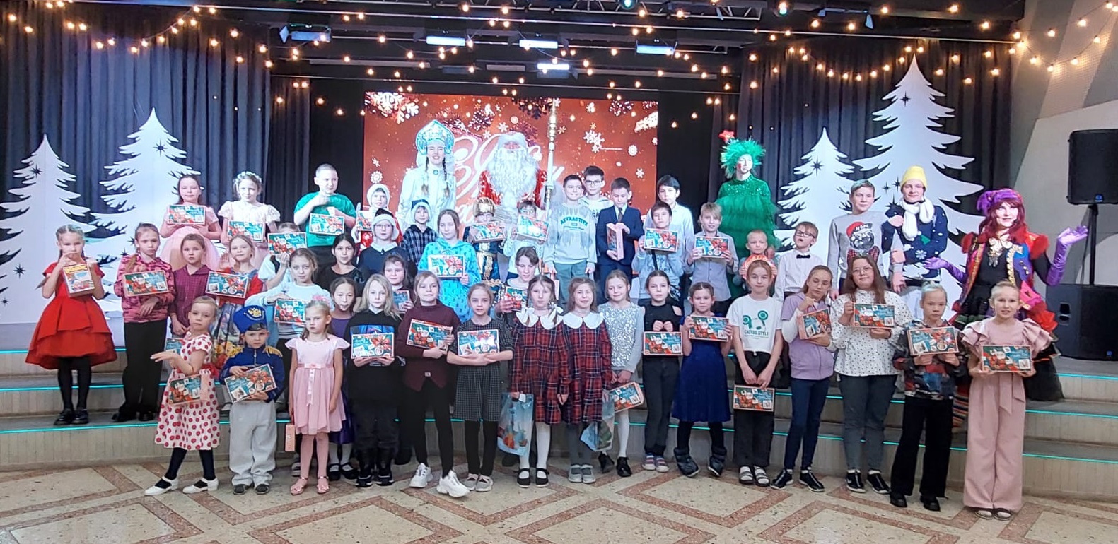 Кульминацией праздника стало вручение сладких подарков от Деда Мороза, а также совместное фото на память с ним и сказочными персонажами.