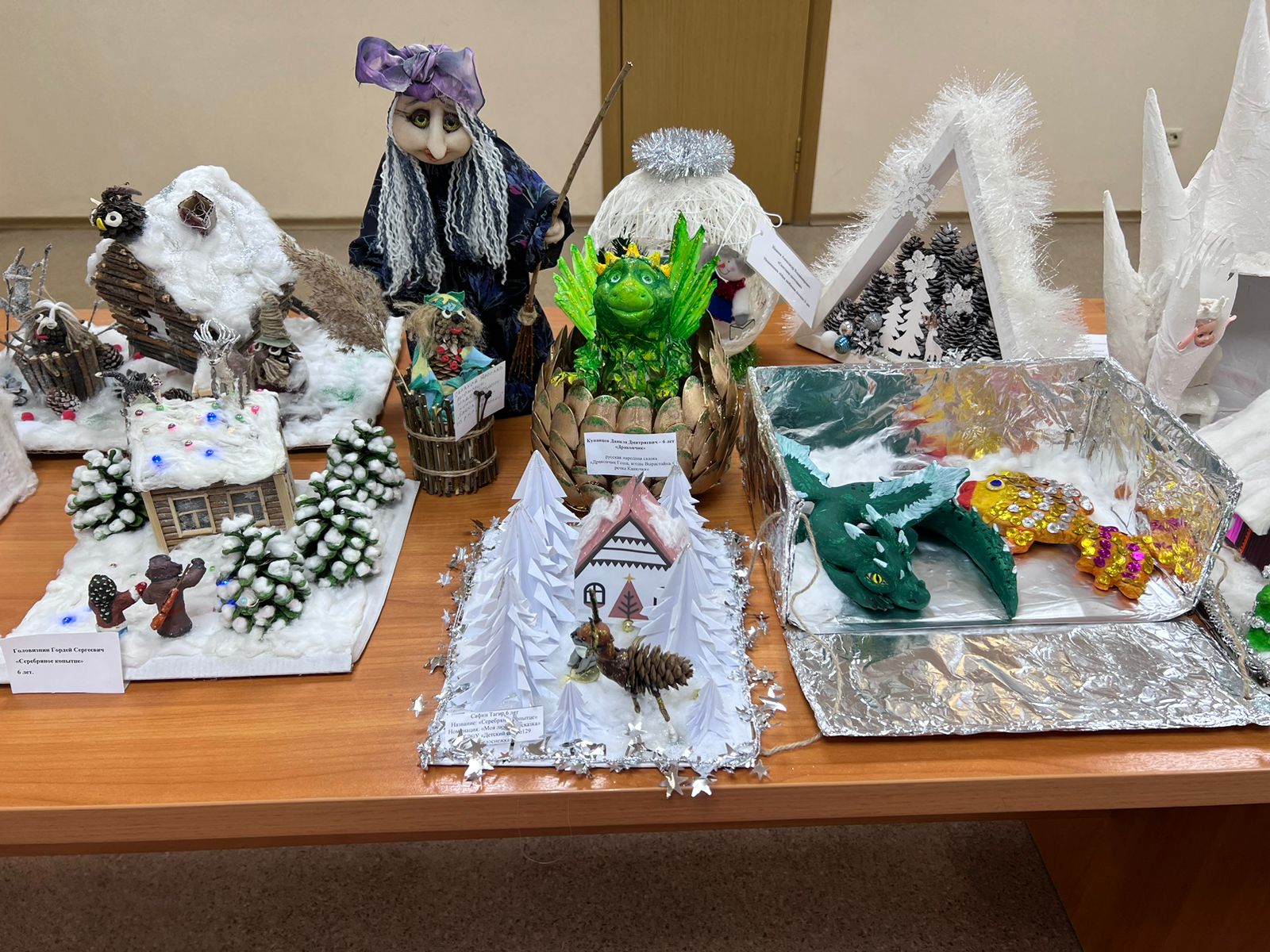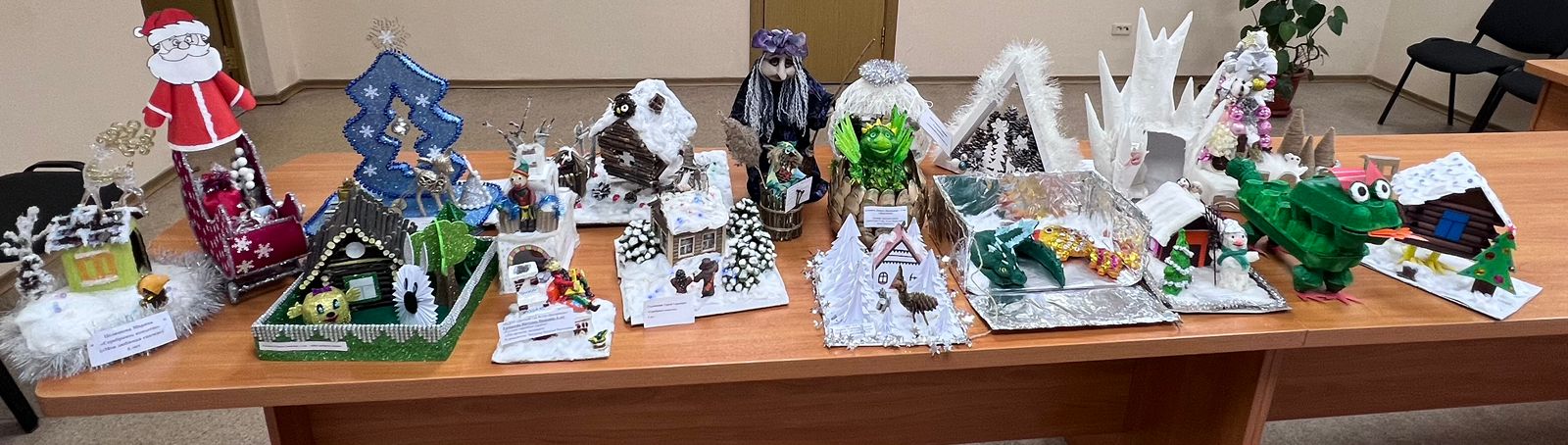 Участники конкурса представили работы, выполненные из картона, бумаги, бросового материала и пластиковой тары. Работы выполнены детьми совместно с родителями.