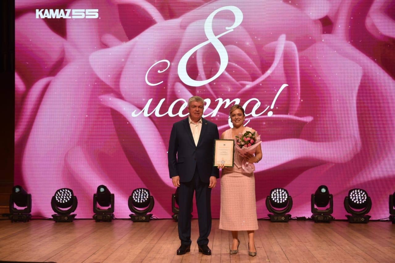В честь наступающего праздника в стенах Органного зала для сотрудниц «КАМАЗ» состоялся концерт. Для прекрасной половины предприятия выступили Нодар Ревия и Александра Белякова. Коллег поздравил ансамбль прессово-рамного завода.