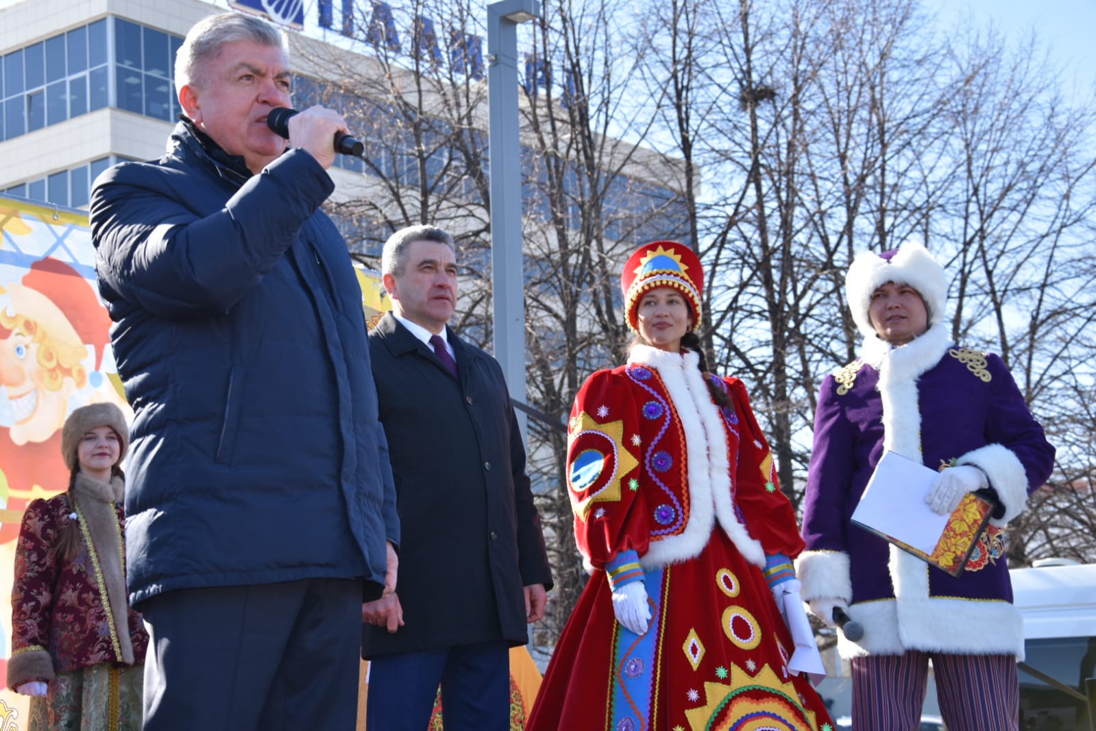 "Многонациональный народ города Набережные Челны собрался на площади, чтобы проводить снежную зиму. Это хорошие традиции, которые передаются издревле. Эту традицию нужно нам, нынешним поколениям города, продолжать. Это не случайно – мы жили, живем и будем жить в согласии",– отметил мэр города, выступая перед челнинцами. Наиль Магдеев напомнил жителям и гостям города, что в стране проходят выборы Президента Российской Федерации.