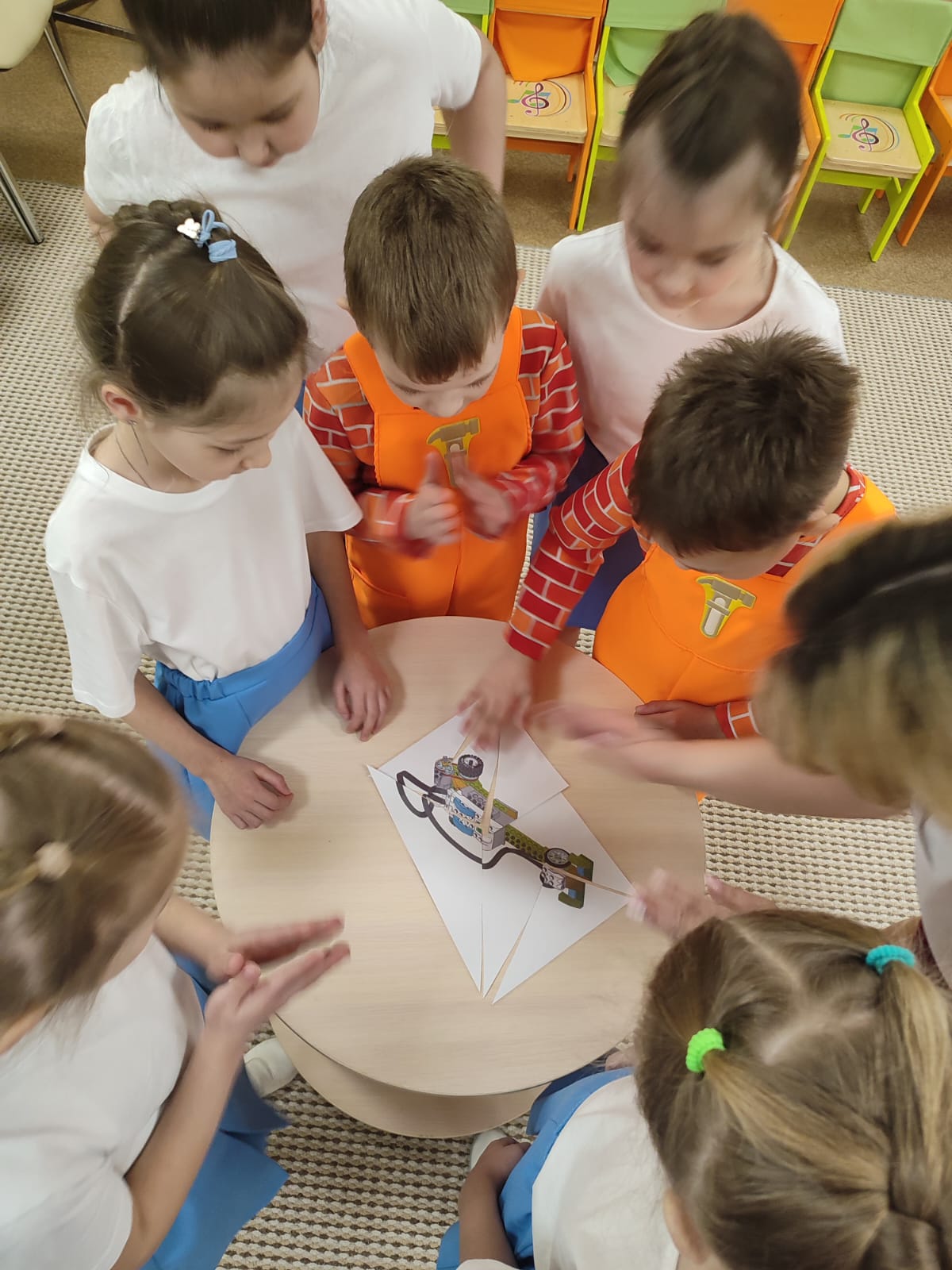 Дети продемонстрировали знания о заводе и заводских профессиях. Кроме того, учились собирать схему автомобиля из пазлов, модель из специального конструктора, программировали свои автомобили и испытывали их в движении. Таким образом воспитанники расширяли знания о профессиях конструктор, программист, испытатель.