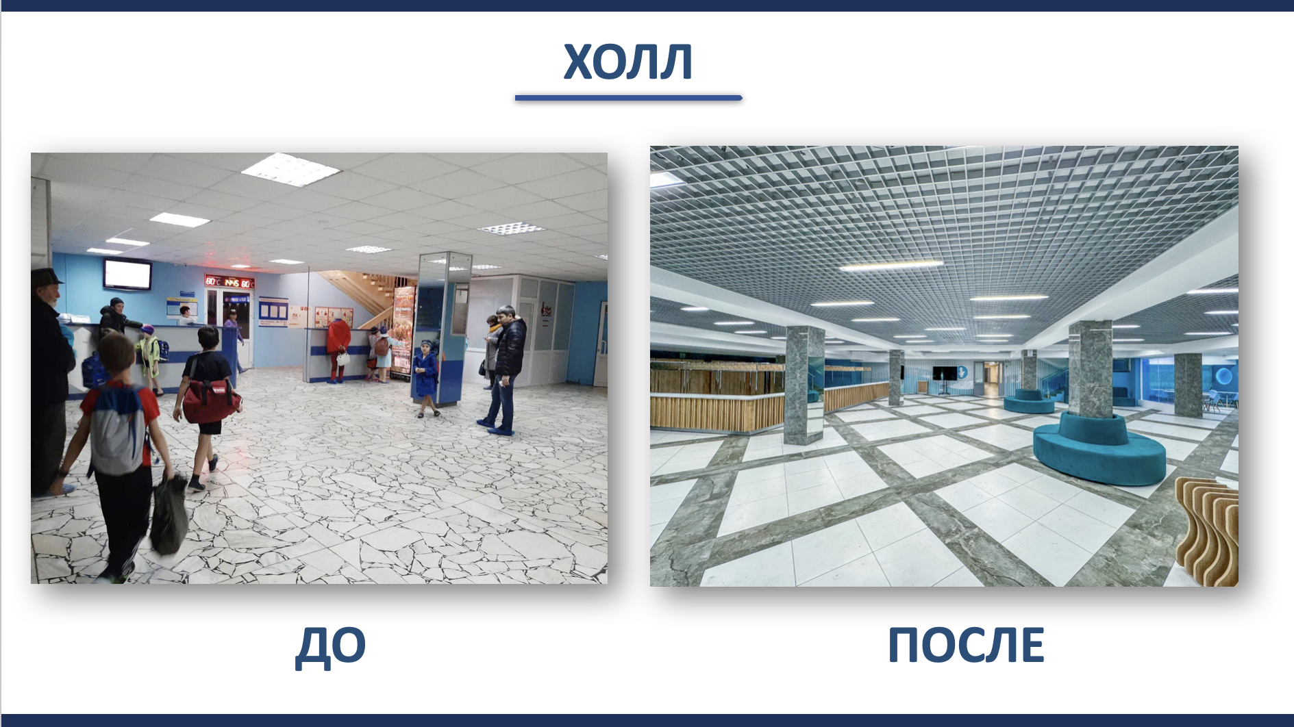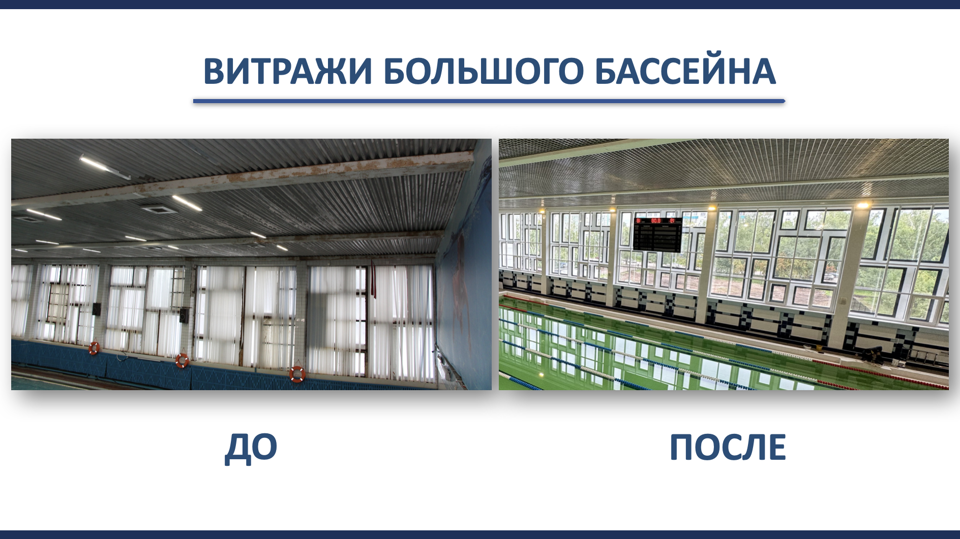 Бассейны обрели спуски для детей с ограниченными физическими возможностями. В детском бассейне обыграна морская тематика, где на потолке появились морские рыбки в 3D формате.Обновленная зона сауны.