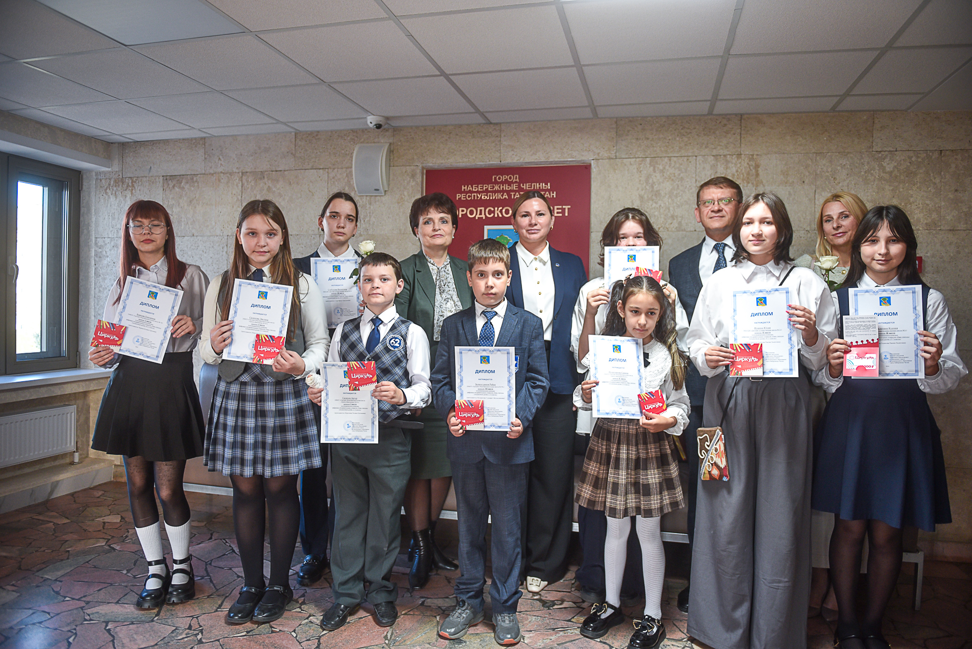 Заместитель Главы муниципального образования Ирина Сагидуллина и руководитель объединения женщин-депутатов Городского Совета «Мэрхэмэт-Милосердие» Альфинур Галиакберова наградили победителей конкурса дипломами и подарками от депутата Городского Совета Илдуса Муллагалиева.