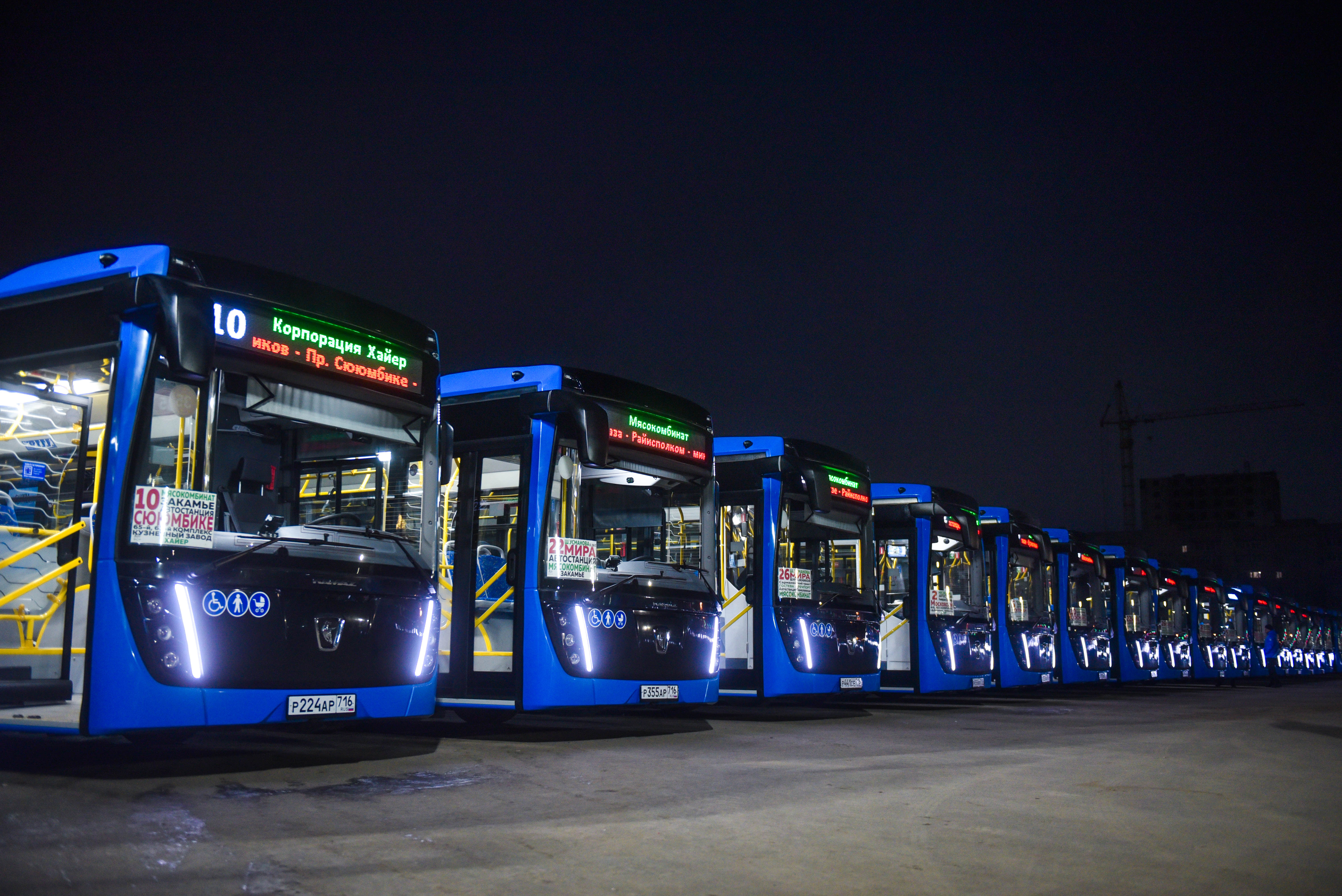 Сегодня ранним утром мэр города Наиль Магдеев приехал на площадку МУП «Горкоммунхоз», где в ровный ряд выстроились 44 автобуса большой вместимости. Все они прошли необходимые процедуры оформления и получили государственные номера.