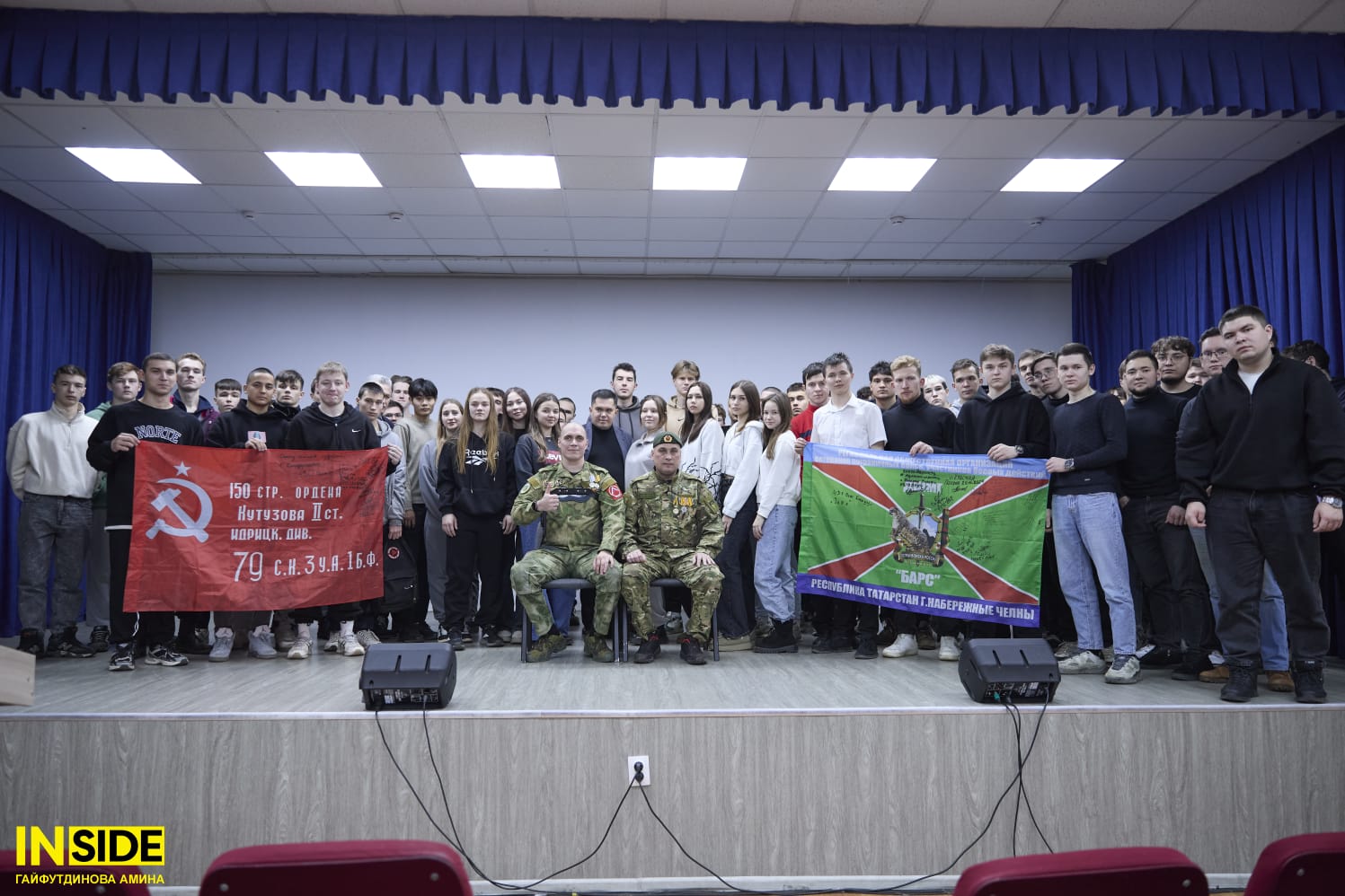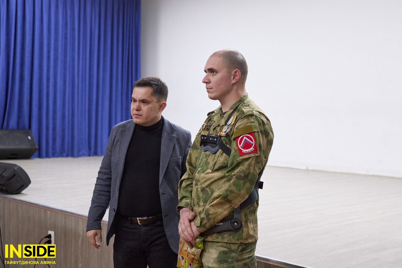 В рамках празднования Дня Героев Отечества студенты НГПУ под руководством доцента кафедры физической культуры и спорта Ирека Гильмутдинова организовали встречу с настоящими героями — участниками специальной военной операции.  Своими историями поделились командир огнеметного отделения в отставке Тимур Нусратов и рядовой снайпер-разведчик Владимир Тихомиров.