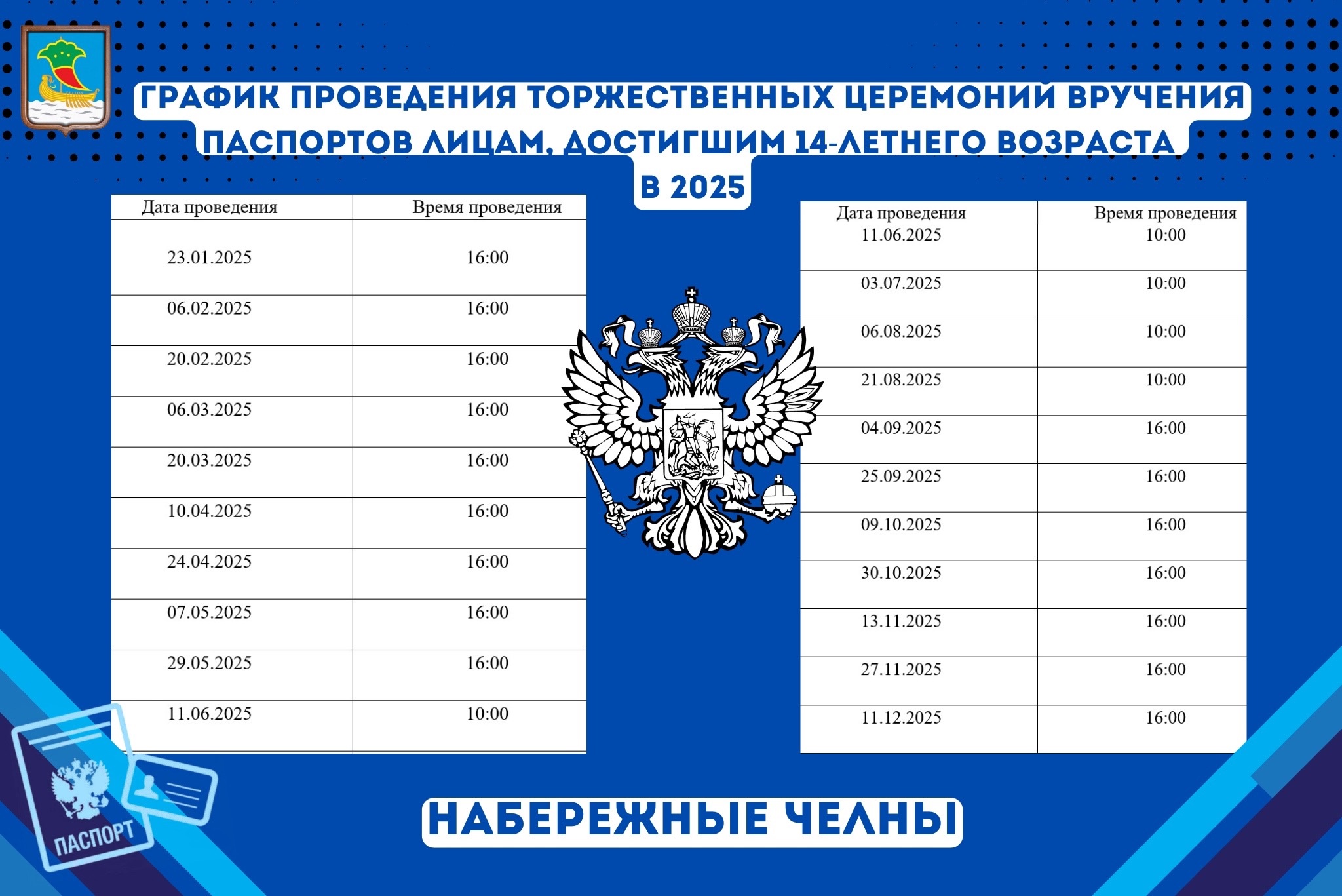 График проведения торжественных церемоний вручения паспортов лицам, достигшим 14-летнего возраста в 2025 году.