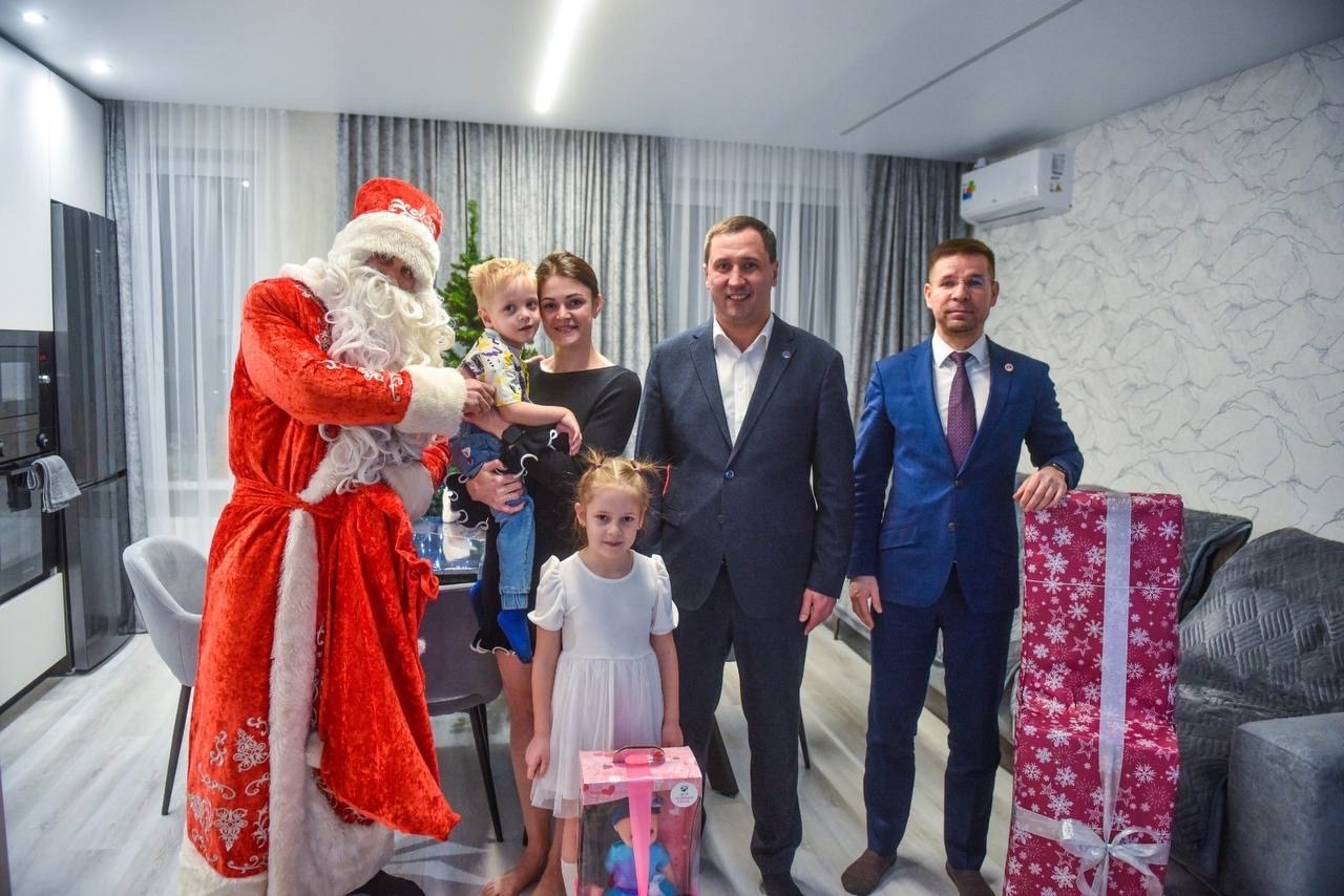 Руководитель Исполнительного комитета Фарид Салахов вместе с Дедом Морозом посетил семью Маряхиных. Юный челнинец мечтал о шведской стенке и его мама Екатерина написала об этой мечте на «Елке желаний».