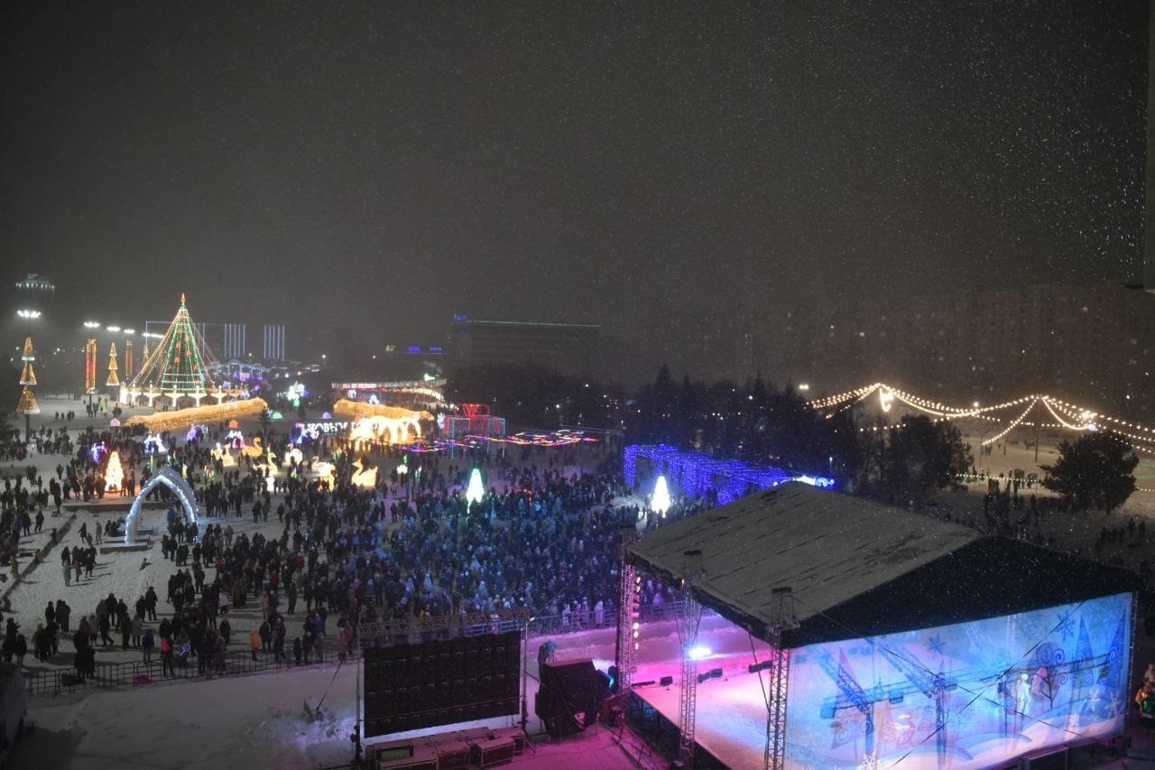 Сегодня на главной ёлке города на площади Азатлык в 19 часов началась праздничная новогодняя программа «Навстречу новогодним чудесам».