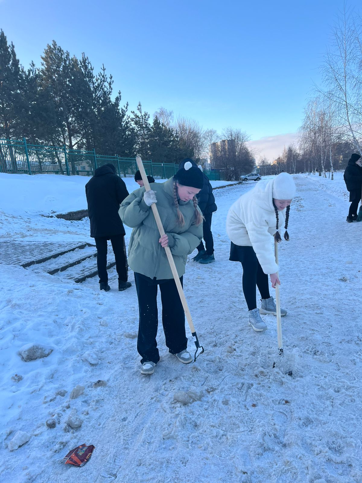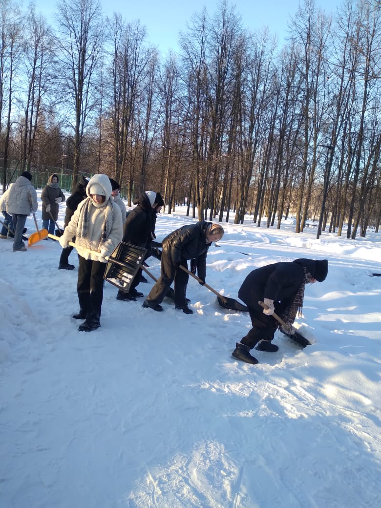 Яр Чаллы педагогия көллияте студентлары Гренада паркында булды. Алар юлларны һәм тротуарларны кардан чистартты.