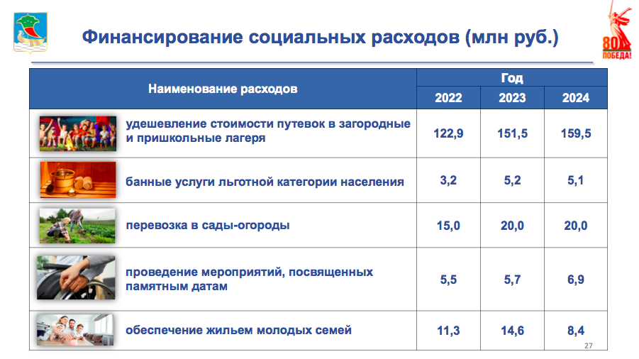160 млн рублей выделено в качестве дотации на удешевление стоимости путевок в загородные и пришкольные лагеря – 160 млн рублей.