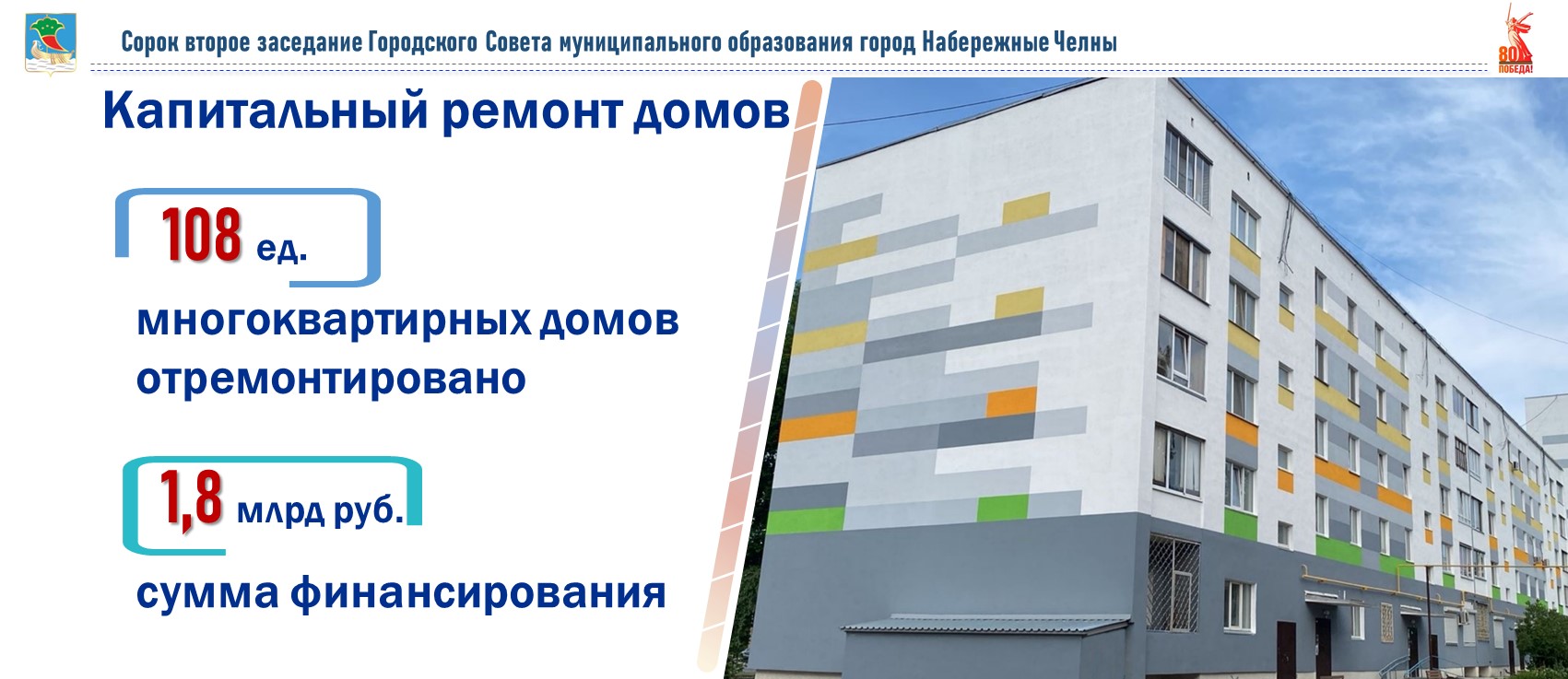 Пристальное внимание автоград уделяет сфере жилищно-коммунального хозяйства, которая затрагивает каждого челнинца. В 2024 году проведен капитальный ремонт 108 многоквартирных домов. В этом году планируется отремонтировать еще 127.