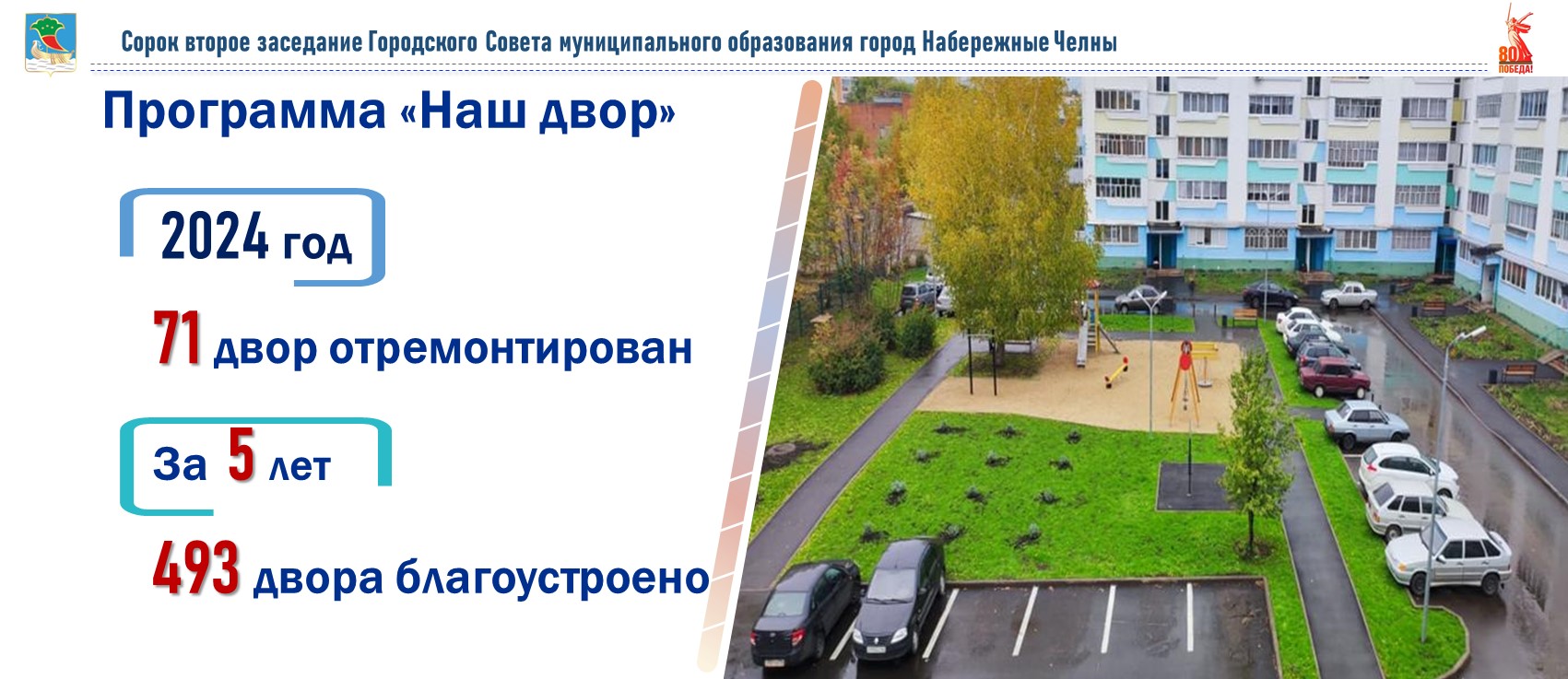 С каждым годом преображаются челнинские дворы и становятся более комфортными для жителей – этому способствует программа «Наш двор». Так, в прошлом году отремонтирован 71 двор, в этом году будет благоустроено еще 79.