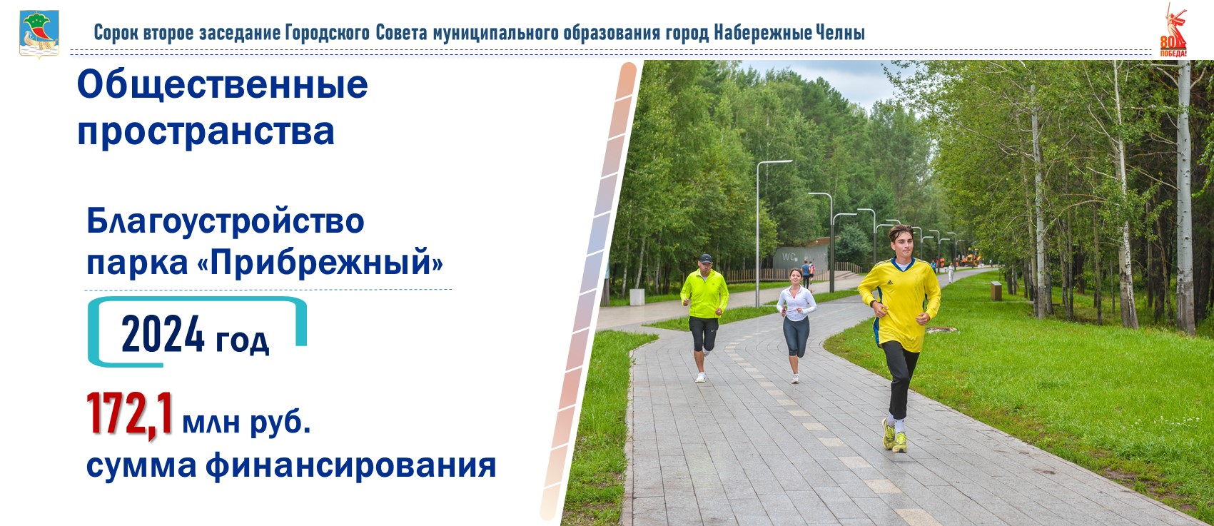 Продолжается работа по благоустройству парка Прибрежный и набережной имени Фикрята Табеева. В 2024 году выполнены работы по благоустройству третьего этапа парка Прибрежный и второго этапа набережной имени Фикрята Табеева.