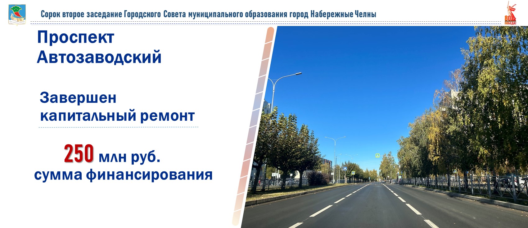 Также в 2024 году завершен капремонт проспекта Автозаводский (на участке от проспекта Сююмбике до проспекта Мира). Отремонтированы внутриквартальные проезды и тротуары, подъездные дороги к социально-значимым объектам и к двум садоводческим обществам – СНТ «Турбина» и «Ордиушка».