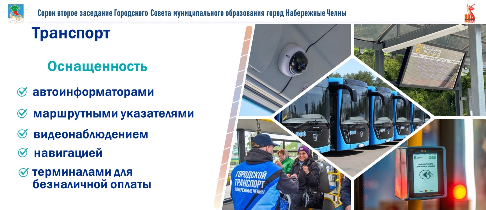 Сегодня автобусы оснащены автоинформаторами, маршрутными указателями, видеонаблюдением, навигацией, а также терминалами для безналичной оплаты проезда, которая сегодня составляет 96%.