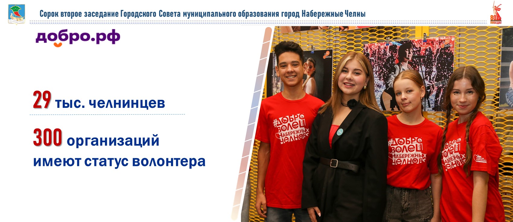 С каждым годом всё более популярной становится добровольческая деятельность. Более 29 тысяч челнинцев и 300 организаций зарегистрировали статус волонтера на платформе «Добровольцы России» «Добро.рф». Они регулярно помогают нуждающимся гражданам, реализуют важные социально-значимые проекты, оказывают серьезную благотворительную помощь.