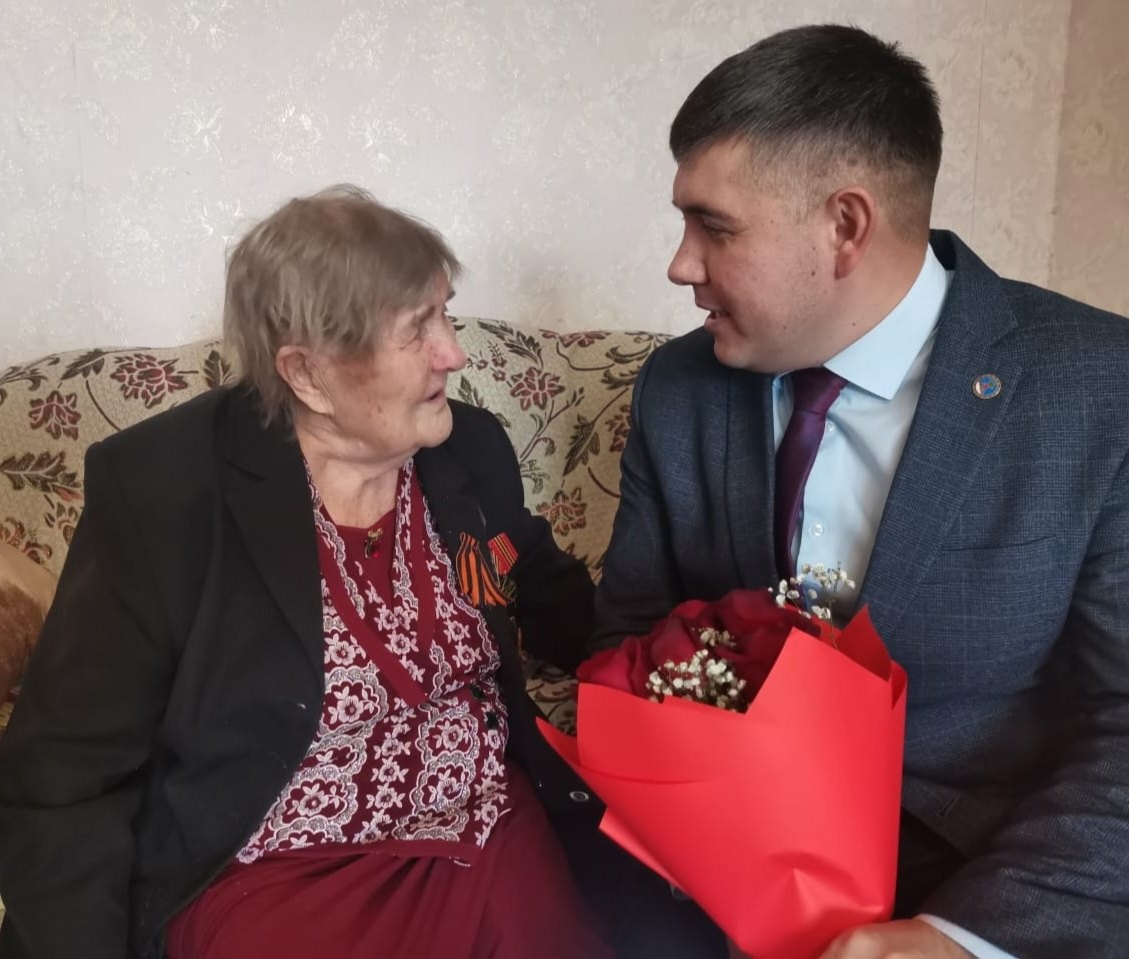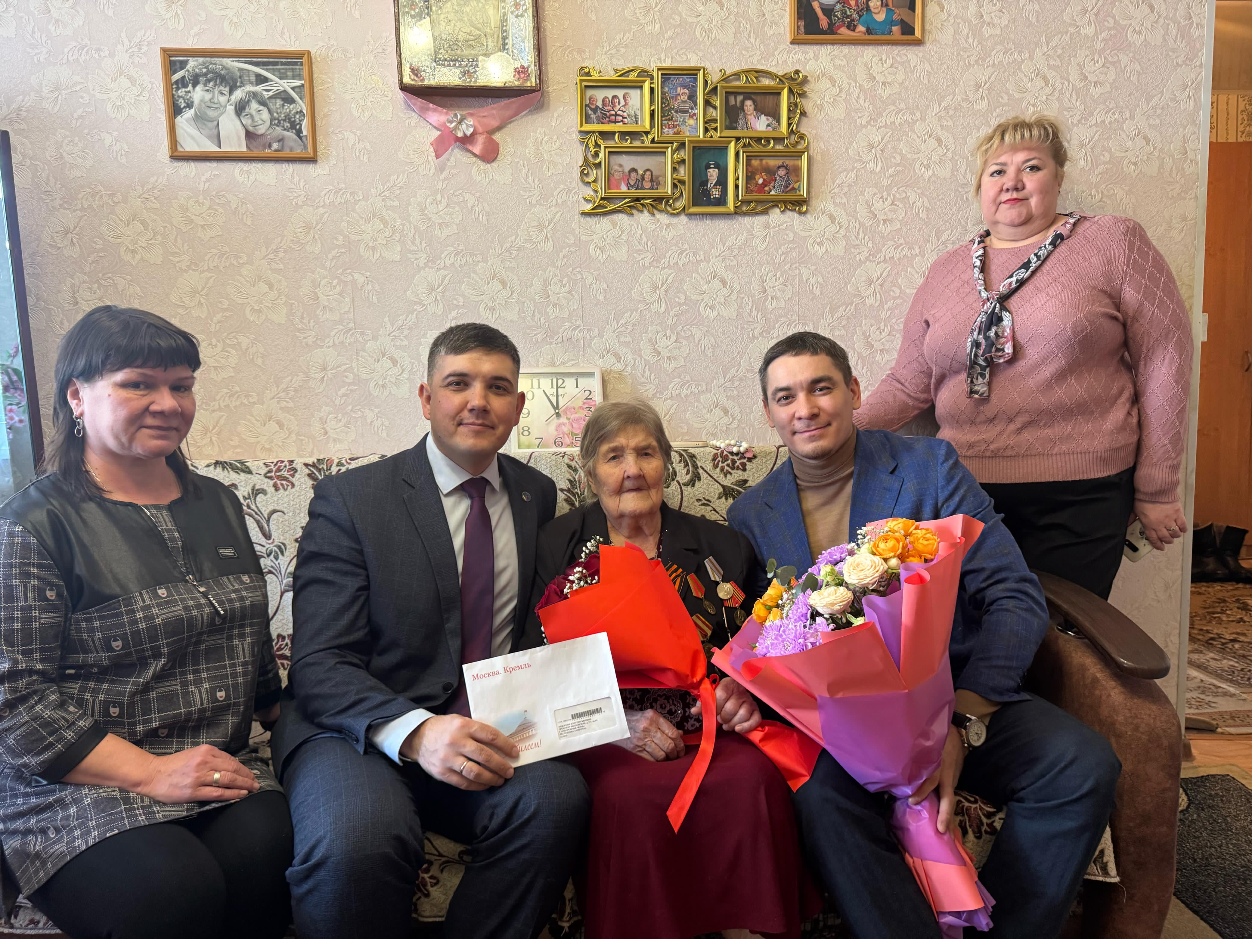 От имени Президента Российской Федерации Владимира Путина, мэра города Наиля Магдеева поздравления с юбилеем получила ветеран Великой Отечественной войны, труженик тыла Зоя  Герасимовна Федорова.