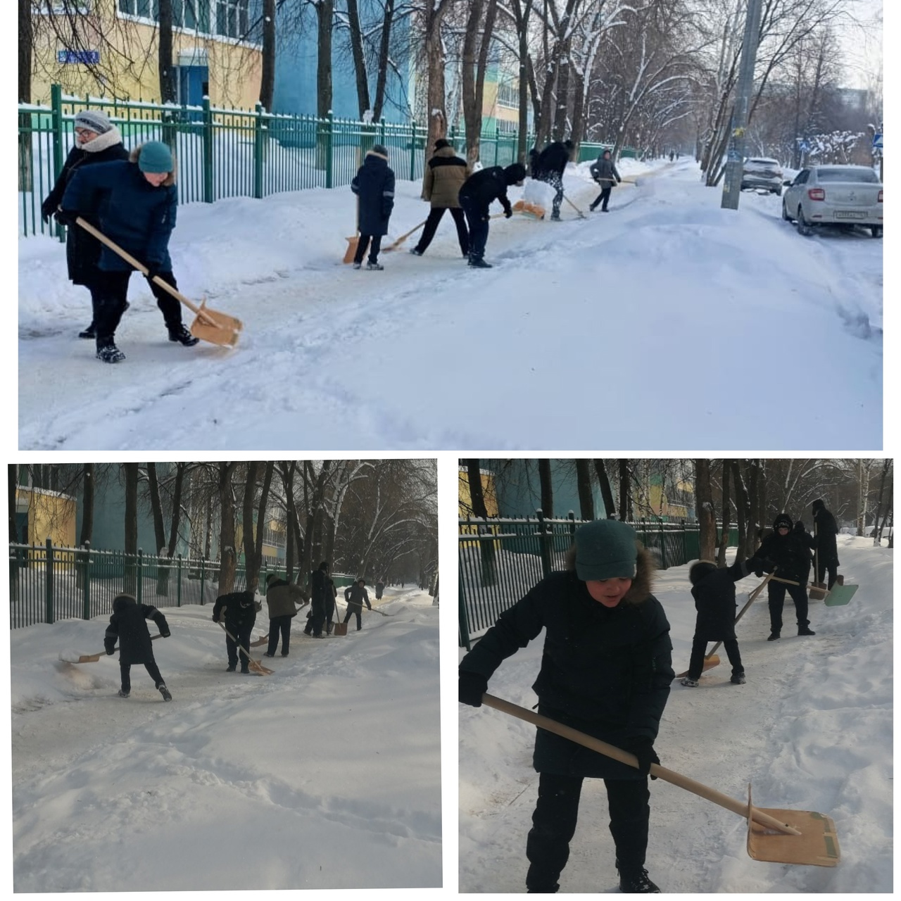 Сегодня учащиеся челнинских школ №22, 25, 45, 58 вышли на помощь городским службам в очистке территории от снега. Совместными усилиями была очищена территория бульвара Солнечный.