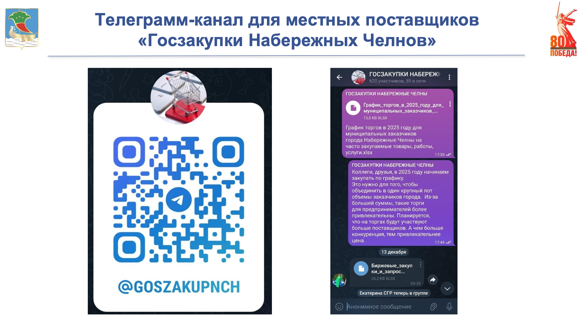 Для того, чтобы челнинские поставщики заранее знали о предстоящих закупках, график разместили в телеграм-канале «Госзакупки Набережных Челнов» и на официальном сайте города. На канал уже подписалось более 600 поставщиков.